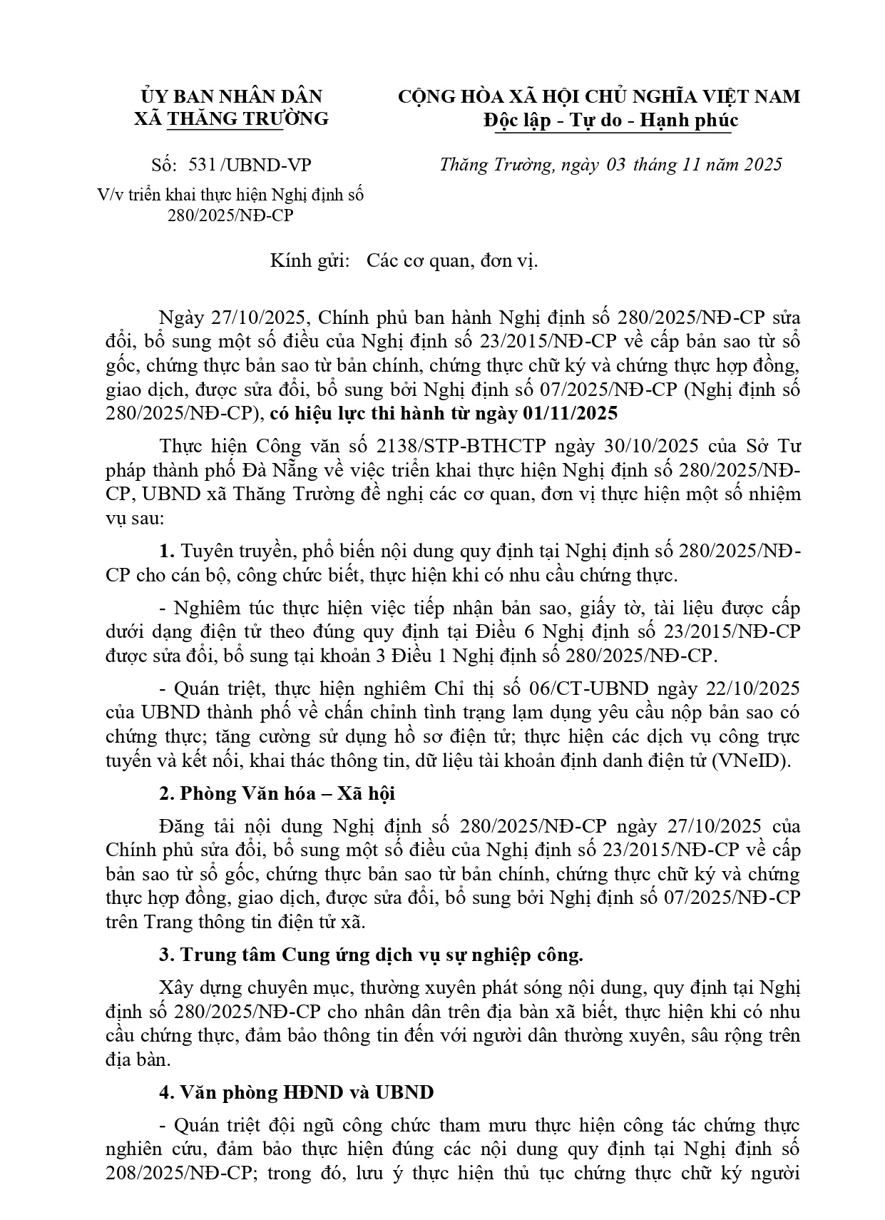 * Nghị định số 280/2025/NĐ-CP ngày 27/10/2025 của Chính phủ sửa đổi, bổ sung một số điều của Nghị định số 23/2015/NĐ-CP về cấp bản sao từ sổ gốc, chứng thực bản sao từ bản chính, chứng thực chữ ký và chứng thực hợp đồng, giao dịch, được sửa đổi, bổ sung bởi Nghị định số 07/2025/NĐ-CP (Tải về)