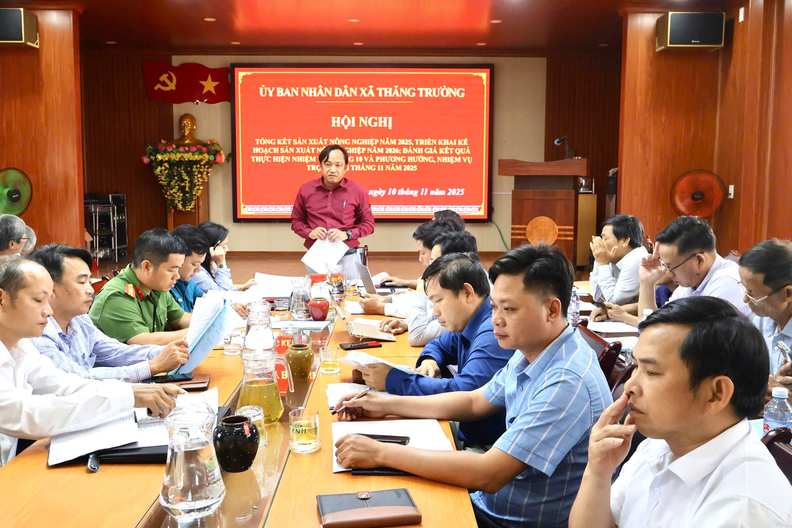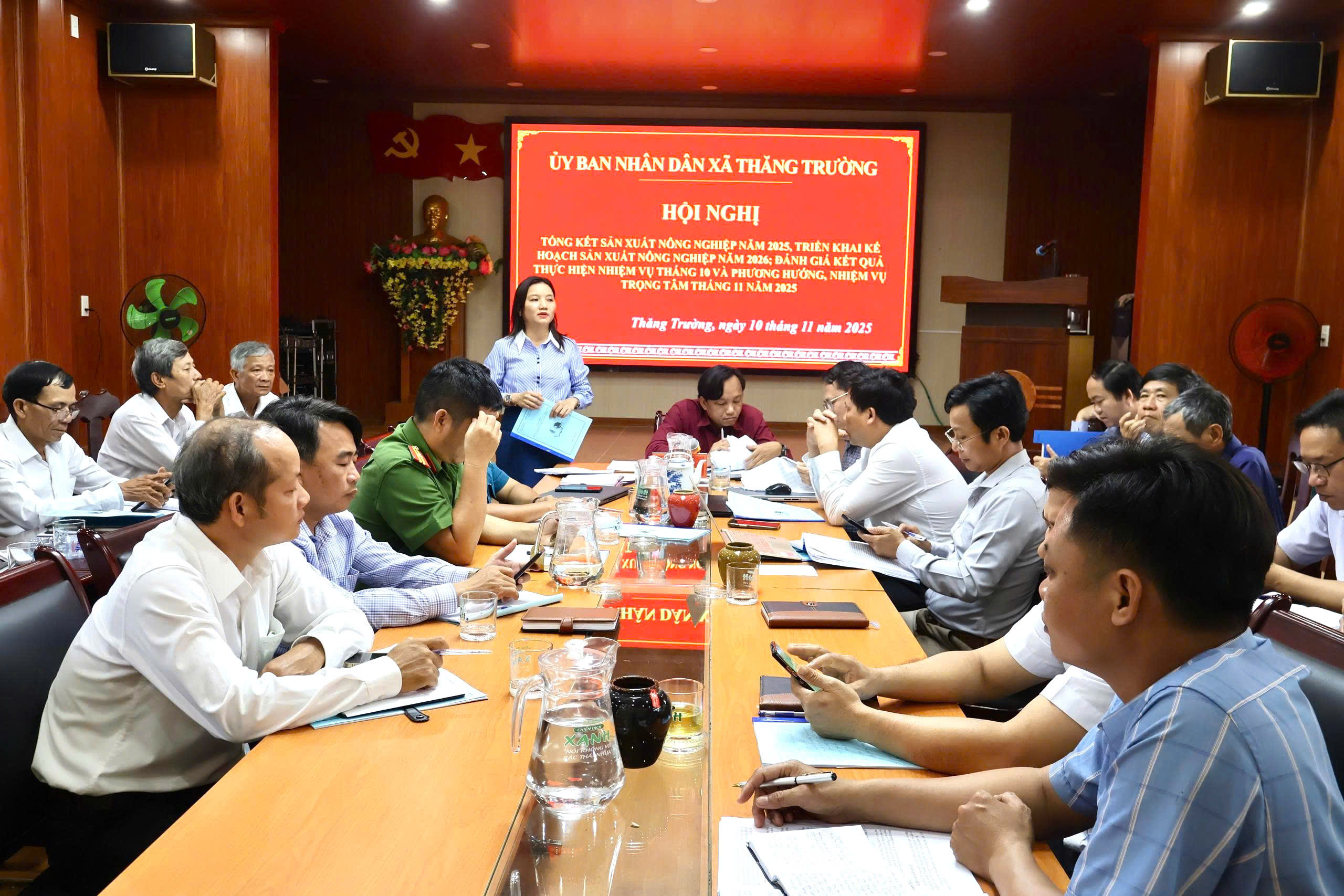Trong năm 2025, sản xuất nông nghiệp của xã Thăng Trường đạt nhiều kết quả tích cực, các chỉ tiêu cơ bản đạt kế hoạch đề ra: Tổng diện tích gieo trồng đạt kế hoạch, năng suất lúa bình quân ước đạt 57,8 tạ/ha, cây sắn NSBQ ước đạt 90 tạ/ha, cây dược liệu sen NSBQ ước đạt 120 tạ/ha, rau củ quả các loại NSBQ ước đạt 90 tạ/ha. Một số địa bàn thôn đã thực hiện việc chuyển đổi cơ cấu cây trồng từ cây lúa kém hiệu quả sang các loại cây trồng khác cho năng suất cao, tổng diện tích chuyển đổi cơ cấu cây trồng trong năm là 179 ha, phát triển vùng trồng tập trung các sản phẩm chủ lực (tràm, khoai lang tím, lạc) có diện tích được cấp giấy chứng nhận theo tiêu chuẩn VietGap là 8ha; Công tác phòng chống dịch bệnh vật nuôi được thực hiện tốt, dịch bệnh dần được kiểm soát, không để xảy ra dịch lớn; Tổng sản lượng thủy sản trong năm đạt 4.490 tấn (đạt 84% kế hoạch), trên các lĩnh vực khác như lâm nghiệp, phát triển nông thôn, công tác thủy lợi, nước sạch nông thôn, an toàn thực phẩm… đều đạt yêu cầu và đảm bảo thời gian, kế hoạch đề ra.