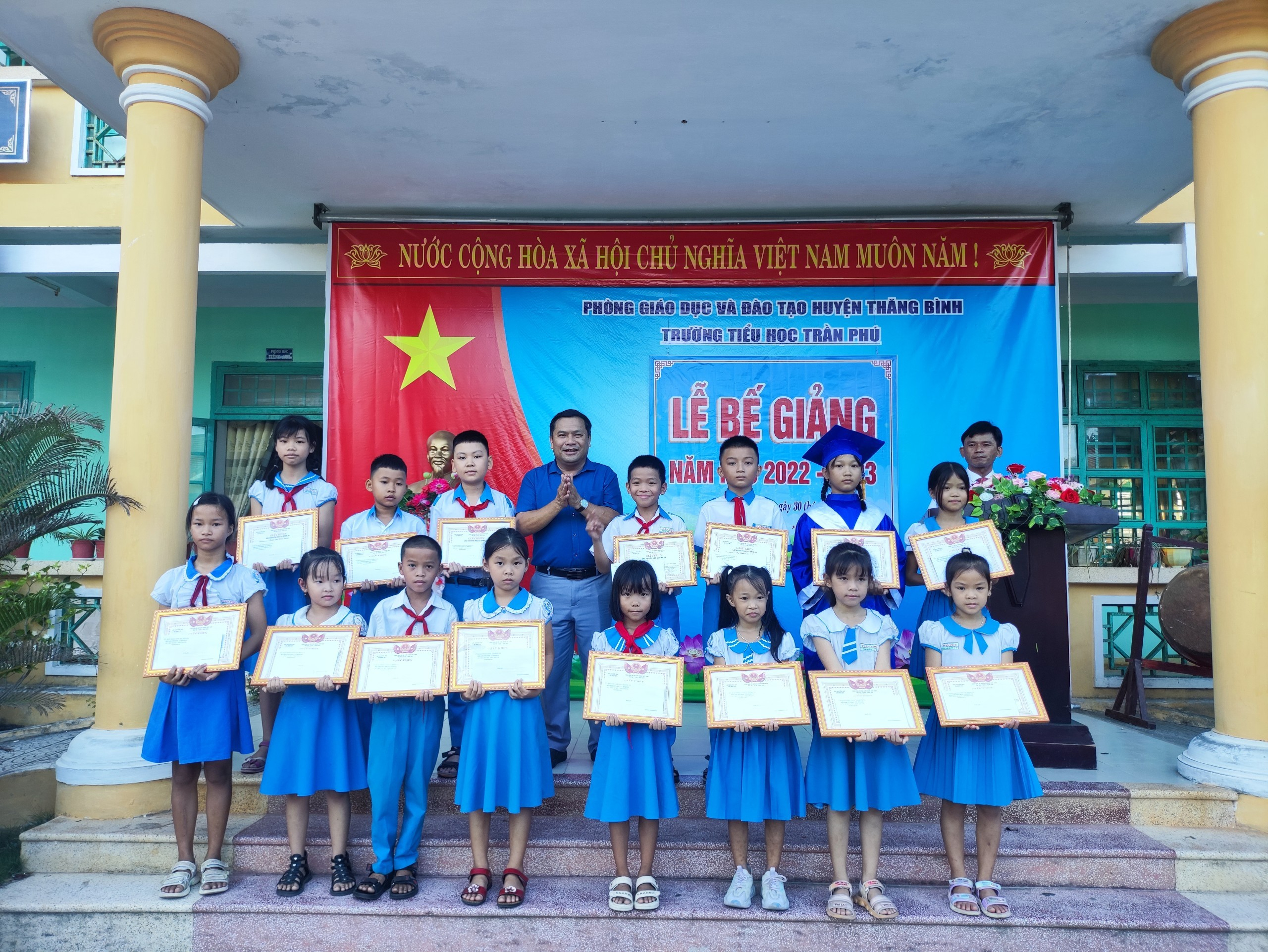 Ảnh: Ông Hà Như Diêu – Chủ tịch hội trao thưởng cho các em học sinh trường Trần Phú đạt thành tích năm học 2022-2023