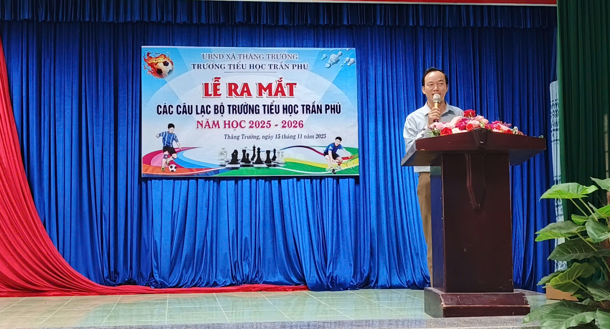 Thầy Nguyễn Tấn Mận - Phó Hiệu trưởng nhà trường công bố quyết định thành lập các câu lạc bộ