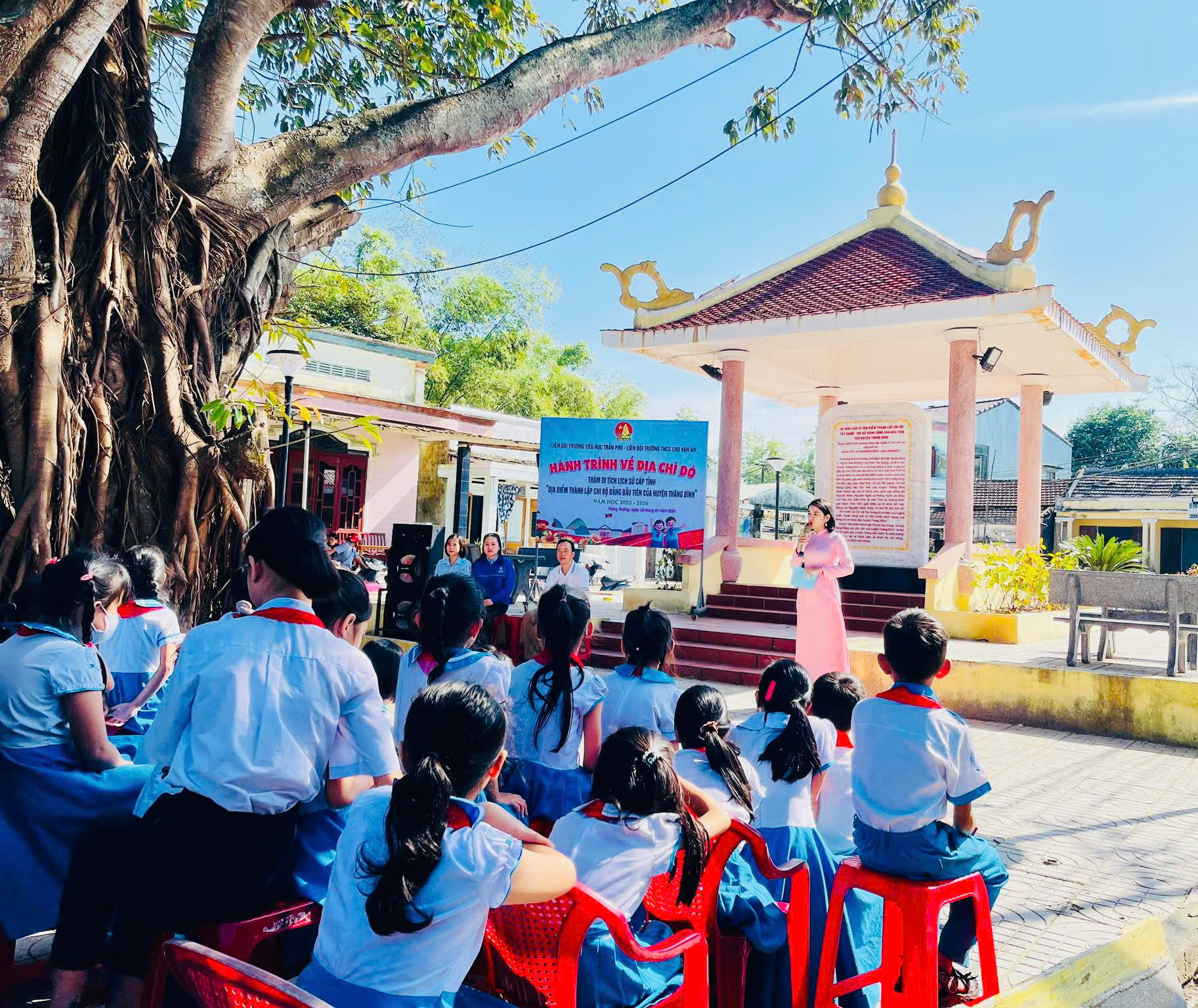 Buổi Lễ diễn ra trong không khí trang nghiêm, xúc động. Tại địa chỉ đỏ giàu giá trị lịch sử, các em học sinh được ôn lại truyền thống cách mạng vẻ vang của quê hương, sự ra đời và hoạt động cả Đảng, bày tỏ lòng biết ơn sâu sắc đối với các thế hệ cha anh đã hy sinh vì độc lập, tự do của dân tộc. Tại chương trình, 32 nhi đồng ưu tú của Liên đội Trường Tiểu học Trần Phú đã được kết nạp vào hàng ngũ Đội Thiếu niên Tiền phong Hồ Chí Minh. Kết nạp đội viên gắn với hành trình về địa chỉ đỏ không chỉ mang ý nghĩa giáo dục truyền thống sâu sắc mà còn góp phần bồi dưỡng lý tưởng cách mạng, lòng yêu nước và niềm tự hào dân tộc cho thiếu nhi. Đây là hoạt động thiết thực của Liên đội hai trường nhằm thiết thực chào mừng kỷ niệm 96 năm Ngày thành lập Đảng Cộng sản Việt Nam (03/02/1930 – 03/02/2026). Đồng thời khẳng định vai trò của tổ chức Đội trong công tác giáo dục toàn diện học sinh. Buổi lễ đã để lại nhiều ấn tượng tốt đẹp, trở thành kỷ niệm đáng nhớ trong hành trình trưởng thành của các các em.