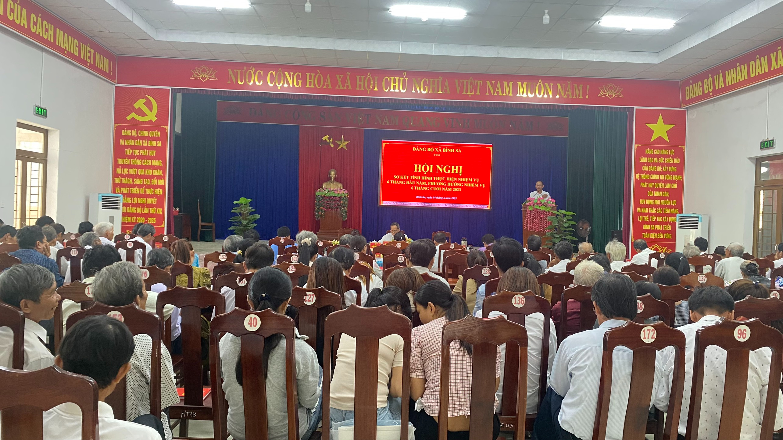 Qua đánh giá tình hình kinh tế - xã hội, QPAN, công tác xây dựng Đảng 6 tháng đầu năm cơ bản đảm bảo ổn định và phát triển. Tổng giá trị sản xuất ngành kinh tế 6 tháng đầu năm 2023 ước đạt 338 tỷ, cơ cấu các ngành kinh tế nông - lâm - ngư nghiệp, công nghiệp - xây dựng, thương mại - dịch vụ tương ứng 33.4%.-37.9-%28,7%. Chương trình mục tiêu quóc gia xây dựng NTM đạt được những kết quả quan trọng. Tổng giá trị sản xuất ngành Nông - lâm – Thuỷ sản ước đạt 112.982 tỷ đồng. Tổng thu ngân sách 6 tháng đầu năm là 3.354.000 đồng, tổng chi ngân sách 6 tháng đầu năm 2.856.000 đồng. Văn hóa xã hội có nhiều tiến bộ. Công tác xây dựng đảng đạt được những kết quả nhất định: Đã xây dựng mô hình chi bộ 4 tốt đảng viên 4 tốt, đã cơ bản hoàn thàng công tác kiểm tra giám sát trong đó Đảng ủy đã KTGS 5 tập thể, 9 cá nhân, UBKT Đảng ủy kiểm tra 3 nội dung 3 tập thể, kiểm tra tài chính đảng cùng cấp; thi hành kỷ luật 2 đảng viên, các chi bộ kiểm tra 9/41 đảng viên. Hội nghị đã tham gia thảo luận đề ra những giải pháp cho 6 tháng cuối năm.