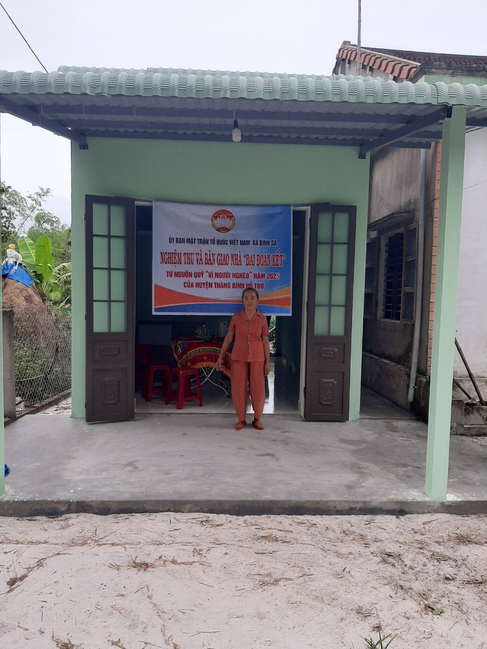 Nhà bà: Trịnh Thị Đáng, thì ở vùng thường xuyên ảnh hưởng bão, ngập lụt nên đổ bê tông rất kiên cố vởi tổng kinh phí 160 triệu đồng, trong đó Quỹ “Vì người nghèo” huyện hỗ trợ 40 triệu đồng, còn lại gia đình bà con người thân, kêu gọi mạnh thường quân, kể cả ngày công Ban thường trực Ủy ban MTTQ Việt Nam xã và Ban công tác Mặt trận huy động giúp đỡ.