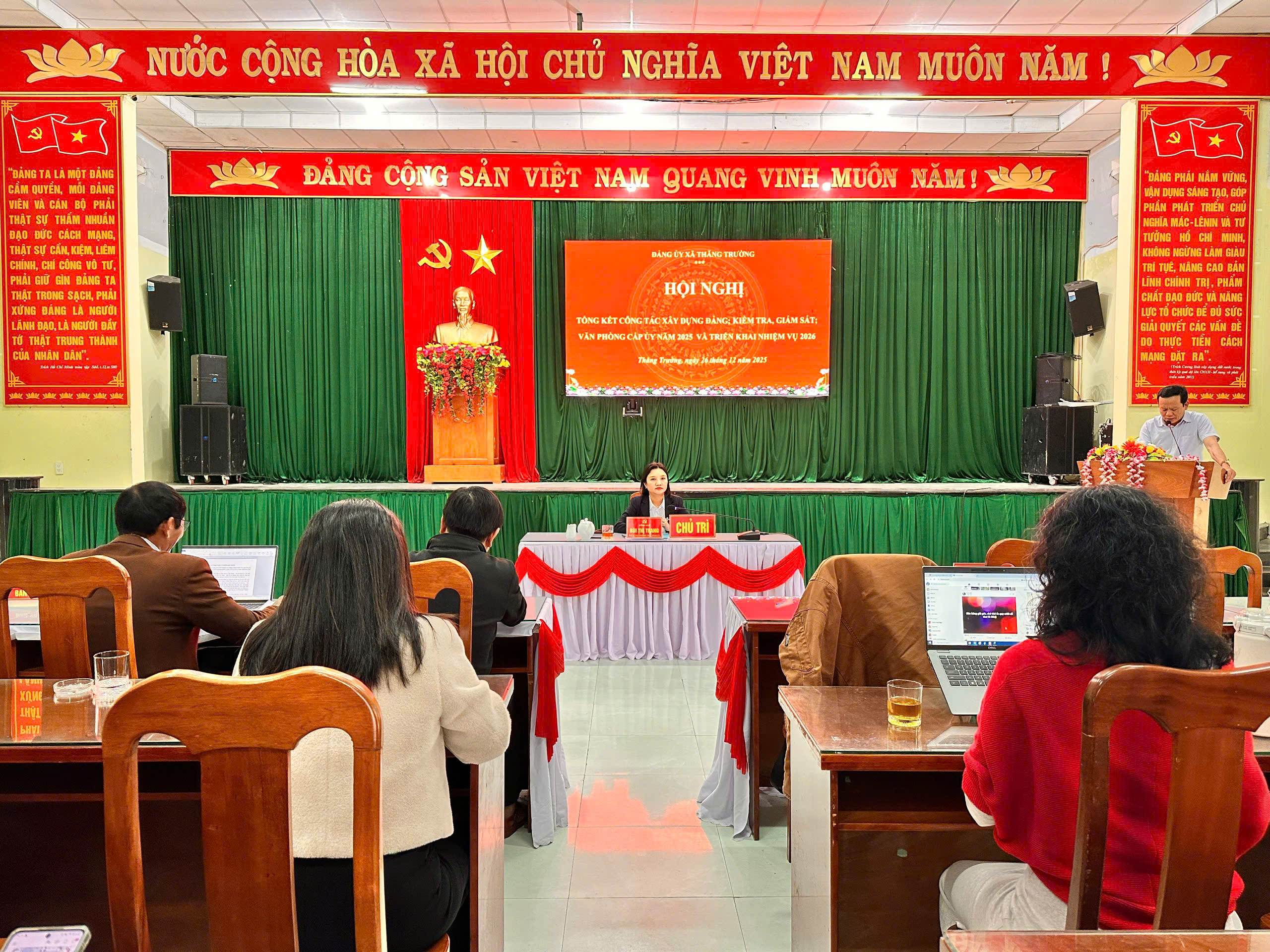 Công tác KTGS được tăng cường đã kịp thời tham mưu ban hành Chương trình kiểm tra, giám sát của Ban chấp hành Đảng bộ xã Thăng Trường khóa I, nhiệm kỳ 2025-2030; Chương trình kiểm tra, giám sát của Ban Chấp hành Đảng bộ xã 6 tháng cuối năm 2025; chương trình làm việc toàn khóa của Đảng ủy nhiệm kỳ 2025-2030. Tham mưu Ban Thường vụ Đảng ủy ban hành các Quyết định và thông báo kết luận đối với các tập thể, cá nhân được kiểm tra, giám sát. Ban Thường vụ Đảng ủy ban hành Kế hoạch số 09-KH/ĐU, ngày 15/8/2025 của Ban Thường vụ Đảng ủy về thực hiện Chương trình kiểm tra, giám sát của Đảng ủy đến cuối năm 2025, Ban Thường vụ Đảng ủy có 01 cuộc kiểm tra đối với Chi bộ thôn An Trân và đồng chí Bí thư Chi bộ. Nội dung kiểm tra: Việc xây dựng và thực hiện Quy chế làm việc của chi bộ; việc lãnh đạo, chỉ đạo, triển khai thực hiện Chỉ thị số 10-CT/TW, ngày 30/3/2007 của Ban Bí thư về nâng cao chất lượng sinh hoạt chi bộ (hiện nay là Chỉ thị số 50-CT/TW, ngày 23/7/2025 của Ban Bí thư về tiếp tục đổi mới và nâng cao chất lượng sinh hoạt chi bộ trong giai đoạn mới); Hướng dẫn số 12-HD/BTCTW, ngày 06/7/2018 của Ban Tổ chức Trung ương một số vấn đề về nâng cao chất lượng sinh hoạt chi bộ; việc xây dựng “Chi bộ bốn tốt”; công tác phát triển đảng viên; Quy định số 85-QĐ/TW, ngày 07/10/2022 của Ban Bí thư về việc cán bộ, đảng viên thiết lập và sử dụng trang thông tin điện tử cá nhân trên internet, mạng xã hội.
