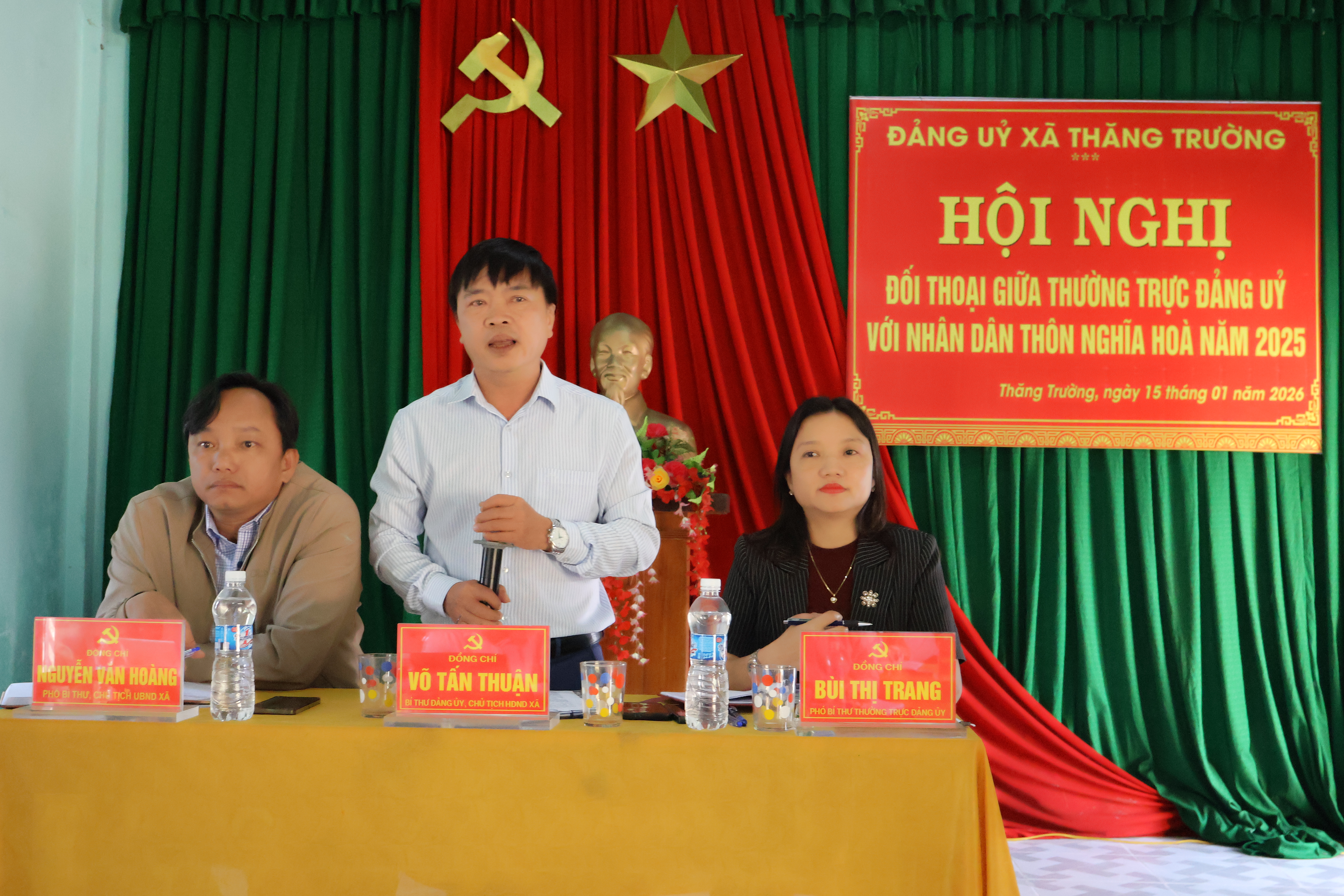Kết luận buổi hội nghị đồng chí Võ Tấn Thuận , Bí thư Đảng ủy, Chủ tịch HĐND xã đã ghi nhận, đánh giá cao tinh thần trách nhiệm, thẳng thắn, xây dựng của bà con Nhân dân thôn Nghĩa Hòa; đồng thời đề nghị UBND xã, các ban ngành chuyên môn và các cơ quan liên quan nghiêm túc tiếp thu, rà soát, giải quyết kịp thời các ý kiến, kiến nghị chính đáng của cử tri, đảm bảo đúng quy định pháp luật, góp phần ổn định tình hình, tạo sự đồng thuận trong Nhân dân.