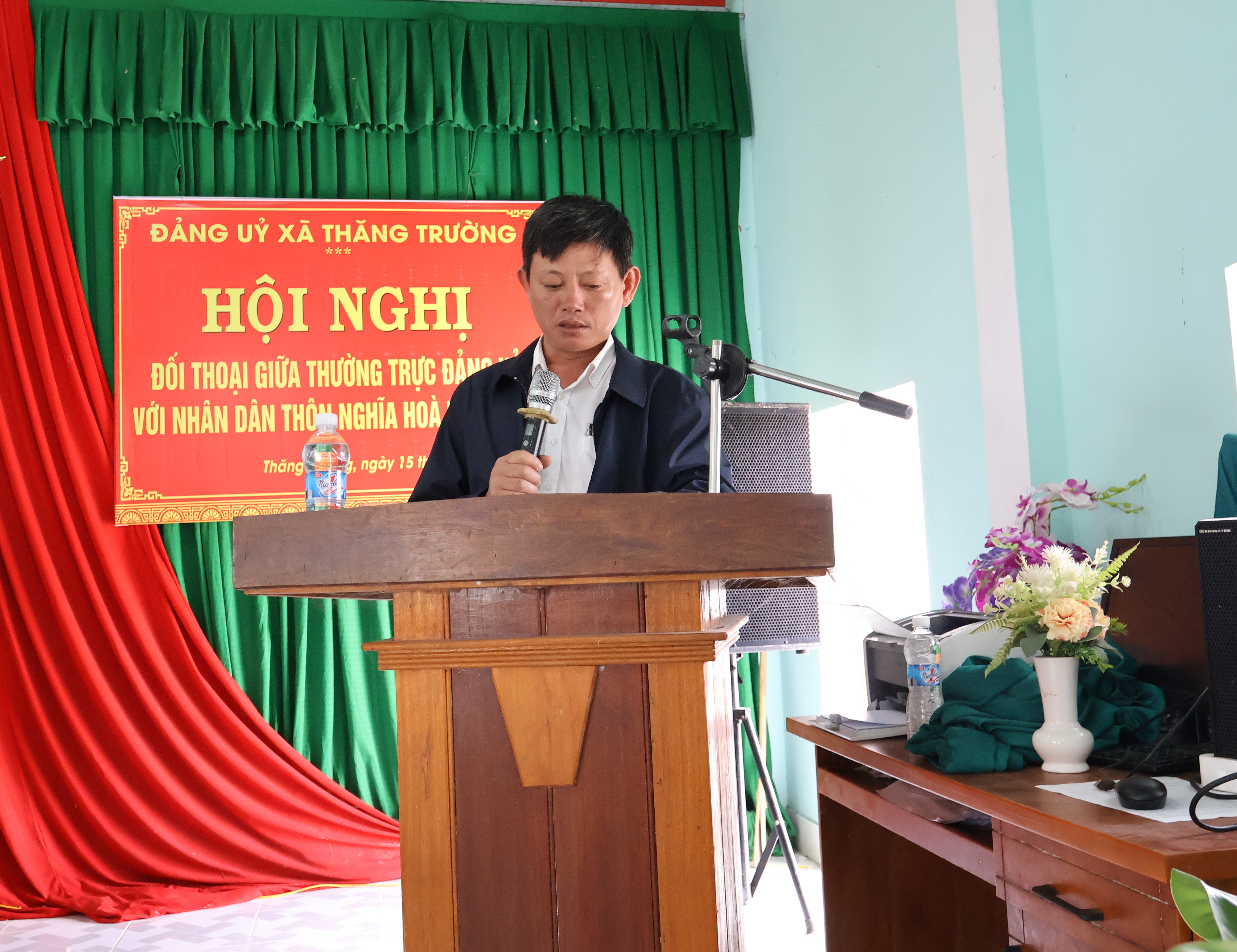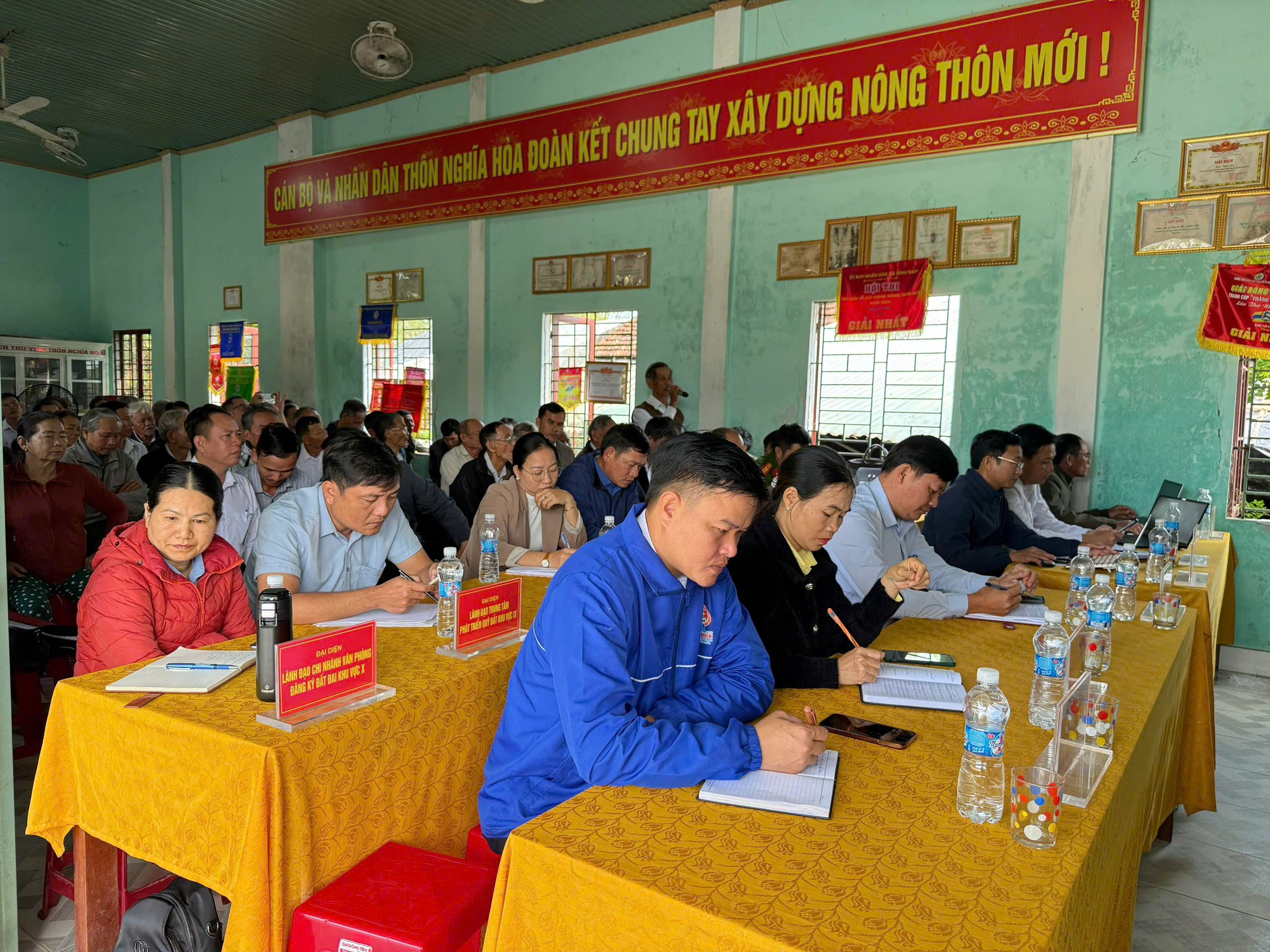 Cùng đại diện các cơ quan liên quan tham dự có: Chủ tịch Ủy ban MTTQVN xã, Phó chủ tịch HĐND xã, trưởng các ban ngành đoàn thể của xã và đại biểu HĐND xã. Đại diện Lãnh đạo Trung Tâm phát triển quỹ đất khu vực 7, Đại diện lãnh đạo Chi nhánh văn phòng đăng ký đất đai Thăng Bình, hơn 150 cử tri trên địa bàn thôn Nghĩa Hòa tham gia đối thoại trực tiếp.