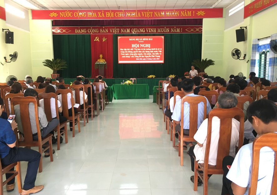 Tại Hội nghị, các đại biểu được nghe đồng chí Bùi Thắng Lợi – Phó trưởng Ban tuyên giáo Huyện ủy, báo cáo viên Huyện ủy giới thiệu về nội dung bài viết “Tự hào và tin tưởng dưới lá cờ vẻ vang của Đảng, quyết tâm xây dựng một nước Việt Nam ngày càng giàu mạnh, văn minh, văn hiến và anh hùng”.