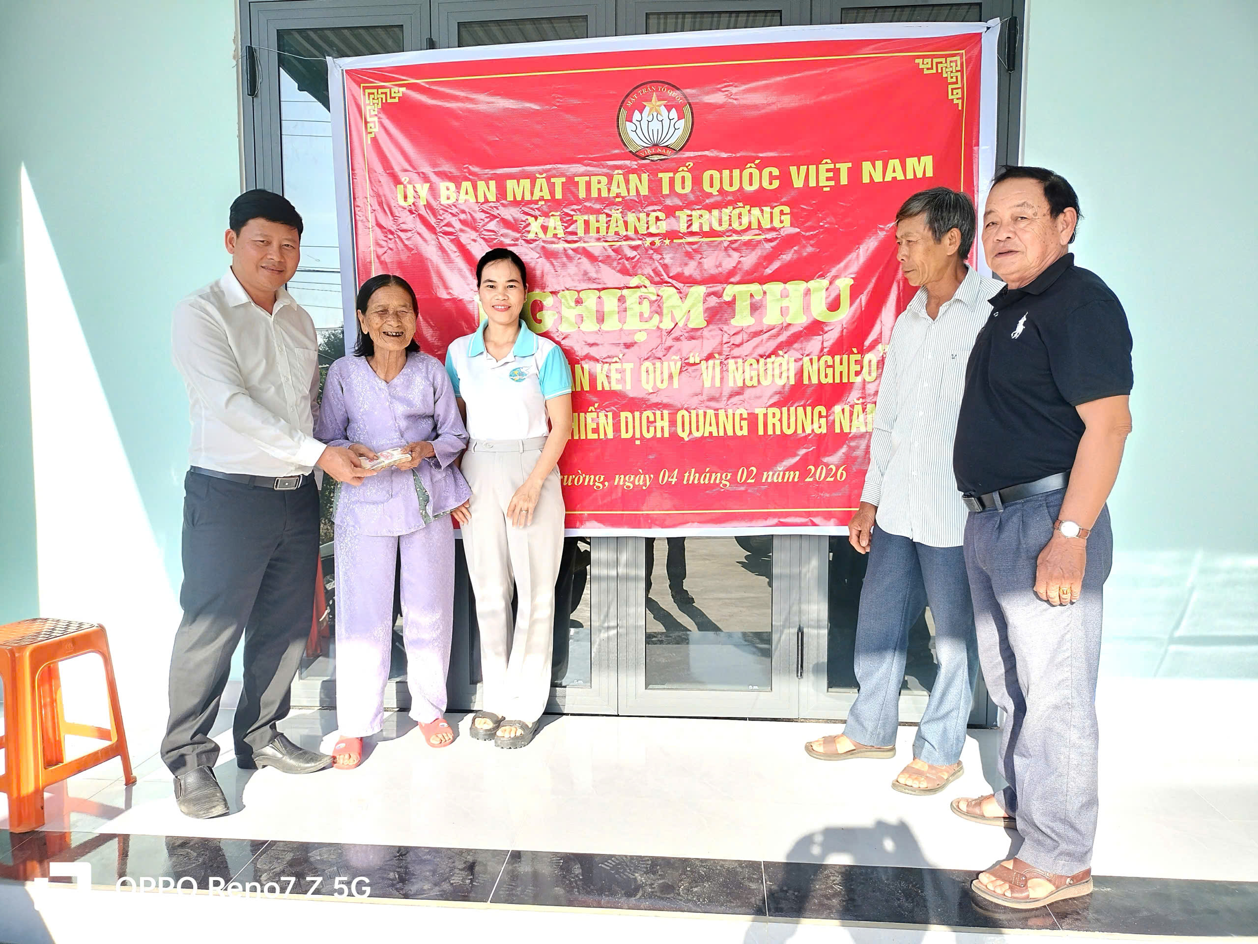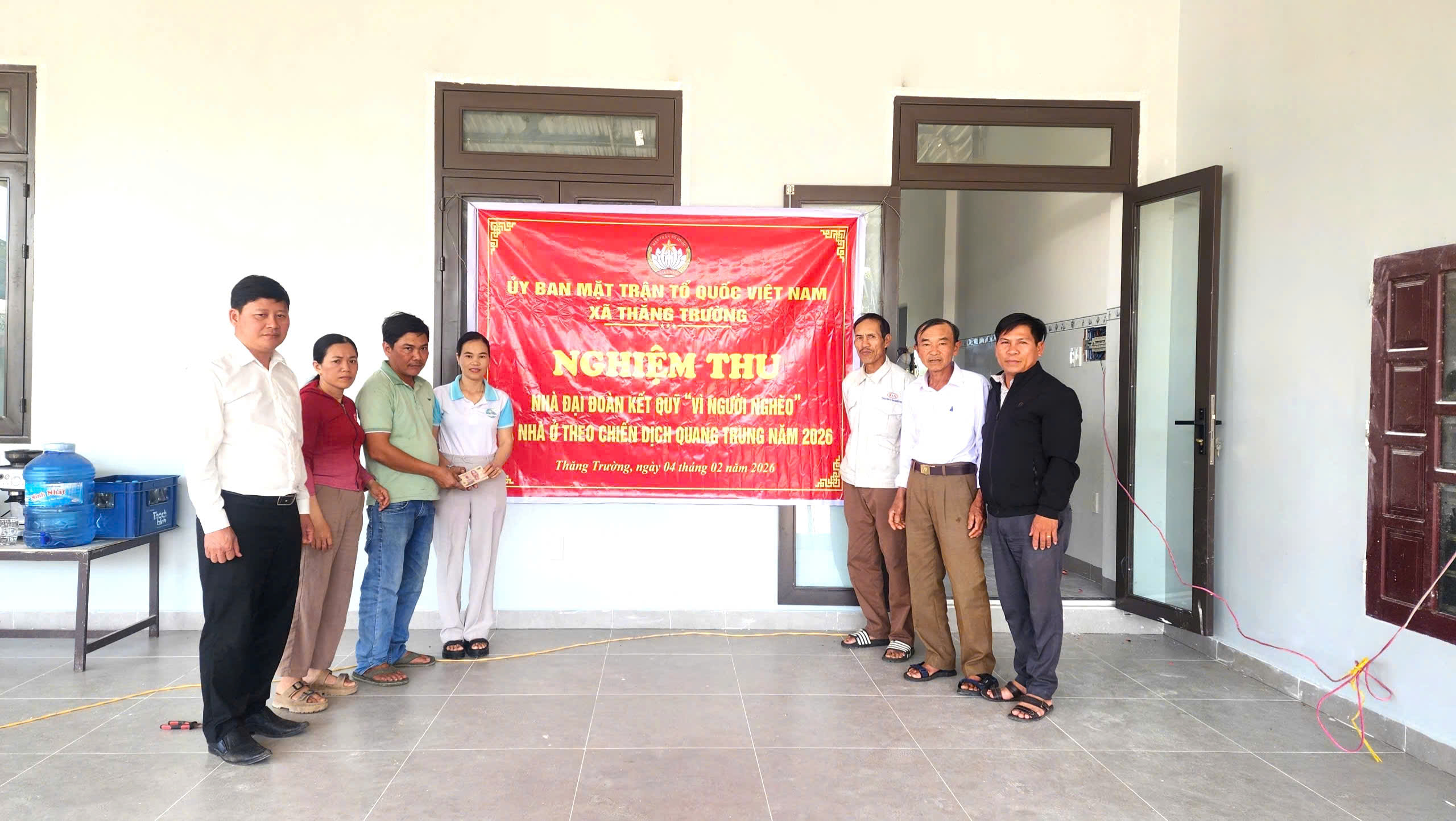 Tham dự và trực tiếp trao tặng, nghiệm thu công trình có đồng chí Nguyễn Xuân Hợi – Ủy viên Ban Thường vụ Đảng ủy, Chủ tịch Ủy ban MTTQ Việt Nam xã Thăng Trường, cùng đại diện Ban công tác Mặt trận và chính quyền thôn.