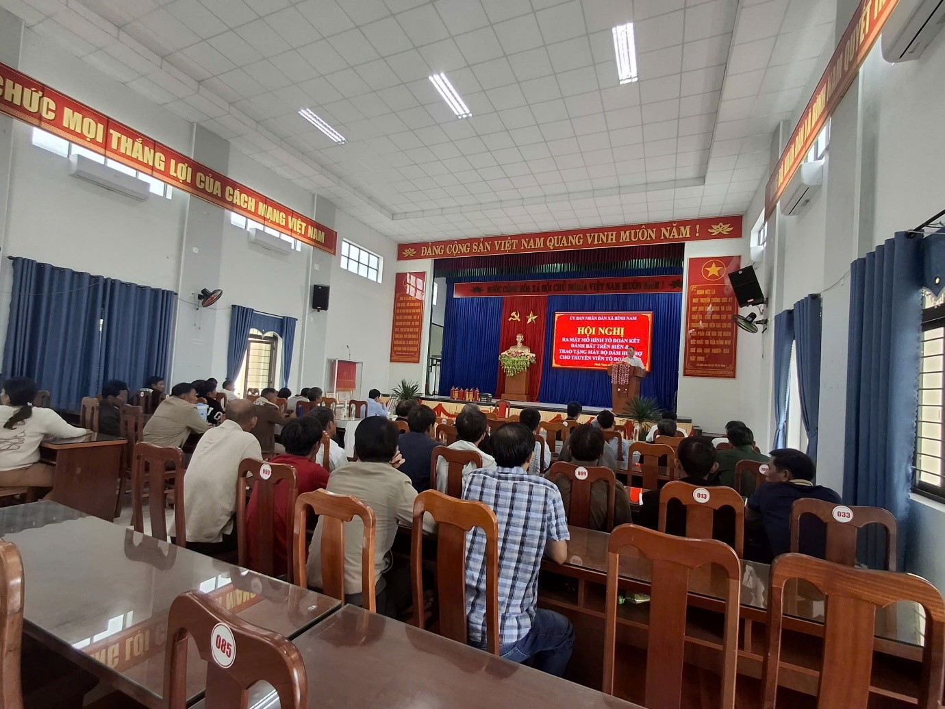 Về phía thôn có sự tham dự của các đồng chí là bí thư chi bộ, trưởng thôn, trưởng ban công tác mặt trận KDC và 24 thuyền viên bcuar 6 tổ đoàn kết đánh bắt trên biển.