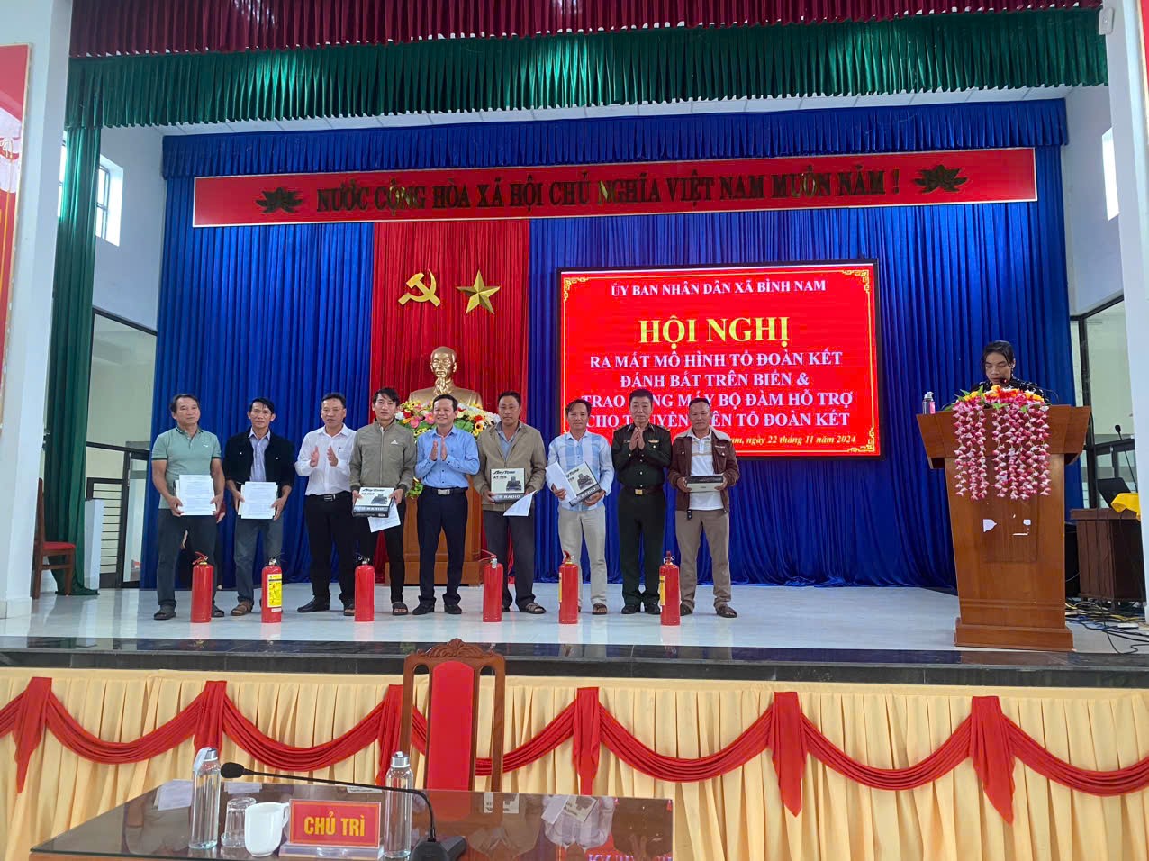 Trong hội nghị đã trao 24 máy bộ đàm và 24 bình chữa cháy cho 24 thuyền viên của 6 tổ đánh bắt trên biển. Các thiết bị được hỗ trợ sẽ góp phần giải quyết được nhiều vấn đề khi có sự cố xảy ra, thông tin được kịp thời chuyển đến các đơn vị chức năng cũng như các tàu cá xung quanh, giảm thiểu được thiệt hại nhất định cho tàu các khi gặp sự cố trên biển.