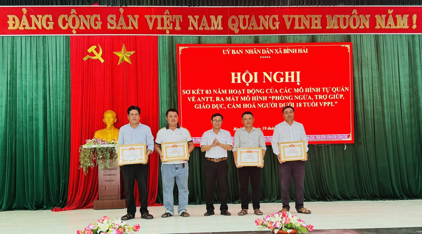 Theo báo cáo từ Công an xã Bình Hải, 03 năm qua, đơn vị đã tham mưu cho Đảng uỷ, UBND xã thanh loại 2 mô hình: “Tiếng kẻng an ninh”; “Thôn không có người vi phạm pháp luật” và tiếp tục xây dựng, quản lý 5 mô hình: Mô hình “tái hòa nhập cộng đồng”; mô hình “Camera an ninh”; mô hình “Tổ nhân dân tự quản về ANTT”; mô hình “Tiếng loa an ninh” và mô hình “thắp sáng đường quê”, và đã mang lại những kết quả đáng ghi nhận.