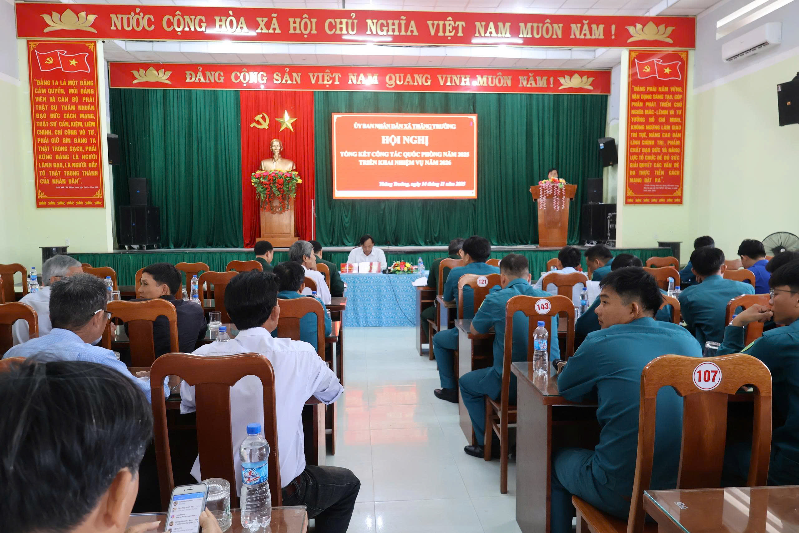 Năm 2025, địa phương đã làm tốt công tác quán triệt triển khai thực hiện nghiêm túc các văn bản của Trung ương, thành phố và xã, đặc biệt là tuyên truyền luật Dân quân tự vệ, Luật Nghĩa vụ quân sự sâu rộng trong quần chúng nhân dân. Từ đó, cán bộ đảng viên, các tầng lớp nhân dân và lực lượng vũ trang xã nắm vững quan điểm của Đảng, nhà nước và địa phương về nhiệm vụ quốc phòng quân sự địa phương, xây dựng nền quốc phòng toàn dân gắn với thế trận an ninh nhân dân vững chắc. Bên cạnh đó, Đảng ủy, UBND xã đã lãnh chỉ đạo, quản lý điều hành, tổ chức các hoạt động quốc phòng theo quy định của pháp luật và đạt hiệu quả, trong đó chú trọng chỉ đạo công tác sẵn sàng chiến đấu; Công tác xây dựng, phát triển và huấn luyện lực lượng dân quân tự vệ đảm bảo về chất lượng, nội dung và chỉ tiêu giao; công tác tuyên truyền tuyển chọn công dân tham gia khám tuyển nghĩa vụ quân sự và công tác giao quân đảm bảo chất lượng, đúng quy trình, năm 2025 giao quân đạt 100%; chính sách hậu phương quân đội, hậu cần kỹ thuật đảm bảo. Đồng thời phát huy những kết quả đã đạt được từ việc phối hợp của 3 lực lượng Quân sự - Công An - Biên phòng theo Nghị định 02 và Nghị định 03 của Chính phủ.