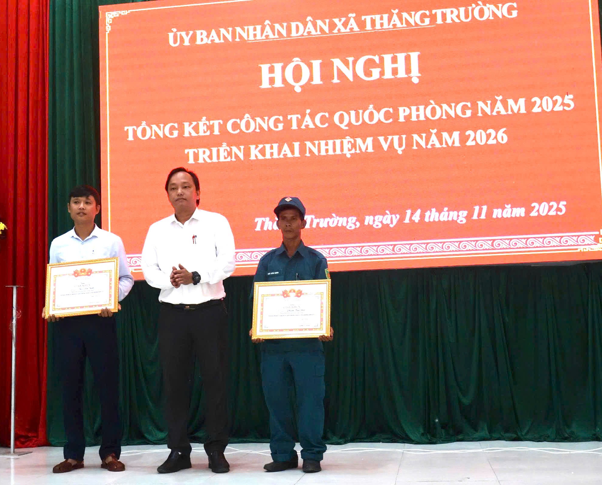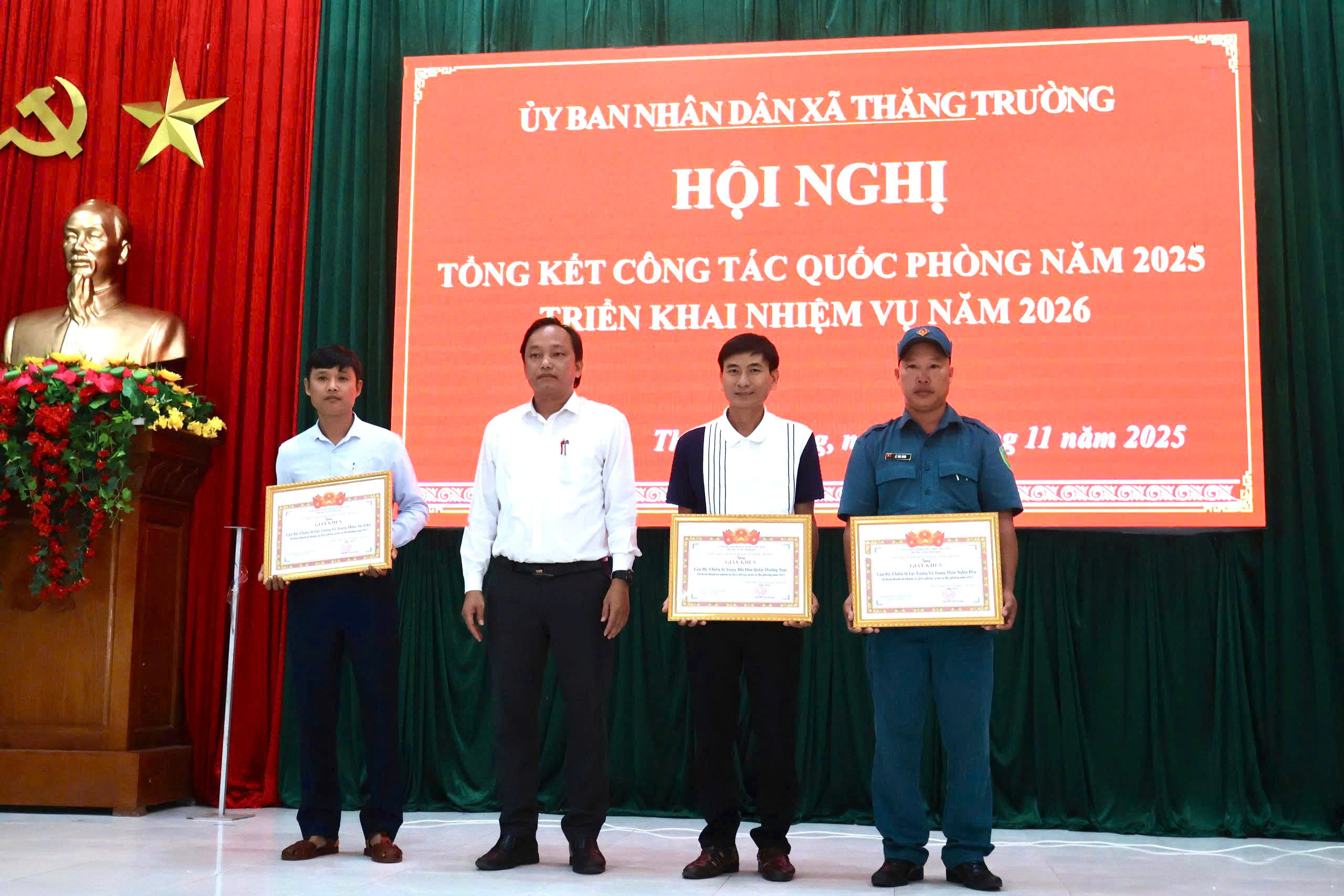 Tại hội nghị, UBND xã Thăng Trường đã biểu dương khen thưởng cho 04 tập thể và 03 cá nhân có thành tích xuất sắc trong công tác quốc phòng – quân sự năm 2025./.