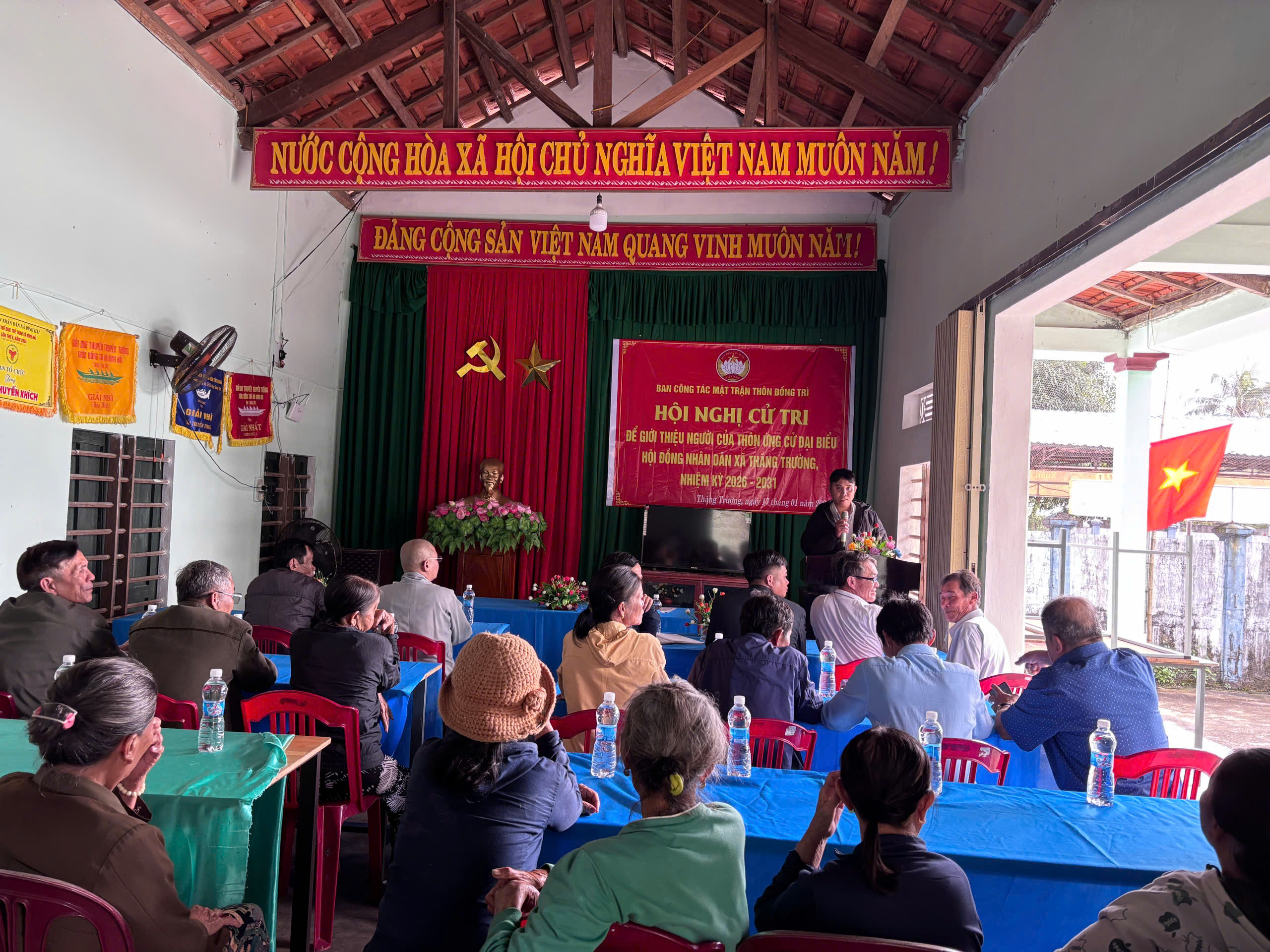 Hội nghị được tổ chức trong không khí trang nghiêm, dân chủ, đúng trình tự, thủ tục theo quy định của pháp luật. Tham dự hội nghị có đồng chí Lê Vũ Bảo – PCT UBMTTQVN đồng thời CT Hội Nông dân xã Thăng Trường, các đồng chí chi ủy chi bộ, trưởng thôn, các tổ chức đoàn thể và đông đảo cử tri đại diện hộ gia đình trong thôn.