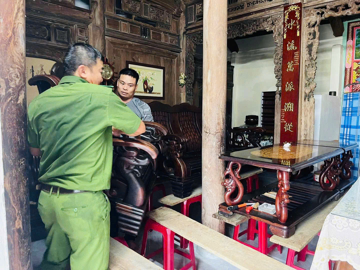 Chỉ đạo lực lượng Công an, BCH Quân sự xã phân công các Tổ công tác nhanh chóng có mặt tại địa bàn, “đi từng ngõ, gõ từng nhà, rà từng hộ”, đặc biệt tại các khu vực thấp trũng, vùng có nguy cơ bị chia cắt để vận động, hỗ trợ di dời người dân đến nơi an toàn, đồng thời giúp sắp xếp đồ đạc, di chuyển vật dụng thiết yếu, bảo vệ tài sản cho các hộ dân.
