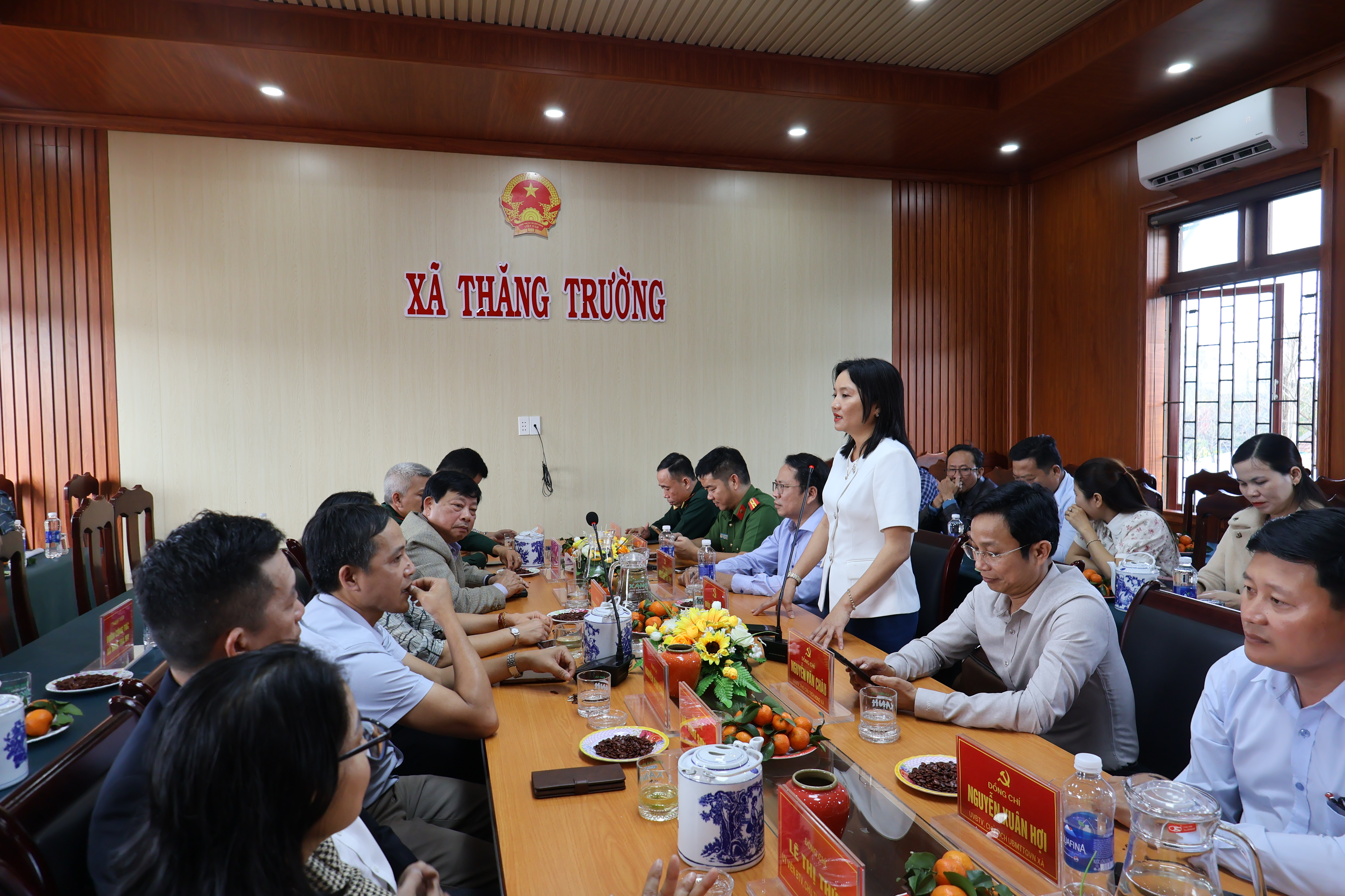 Buổi gặp mặt do đồng chí Bùi Thị Trang – Phó Bí thư Thường trực Đảng ủy xã Thăng Trường chủ trì, cùng sự tham dự của các đồng chí trong Ban Thường vụ Đảng ủy, Thường trực HĐND, UBND, Ủy ban MTTQ Việt Nam xã, lãnh đạo Công an, Quân sự xã và đại diện các ban, ngành, đoàn thể, cơ quan, đơn vị trên địa bàn xã.