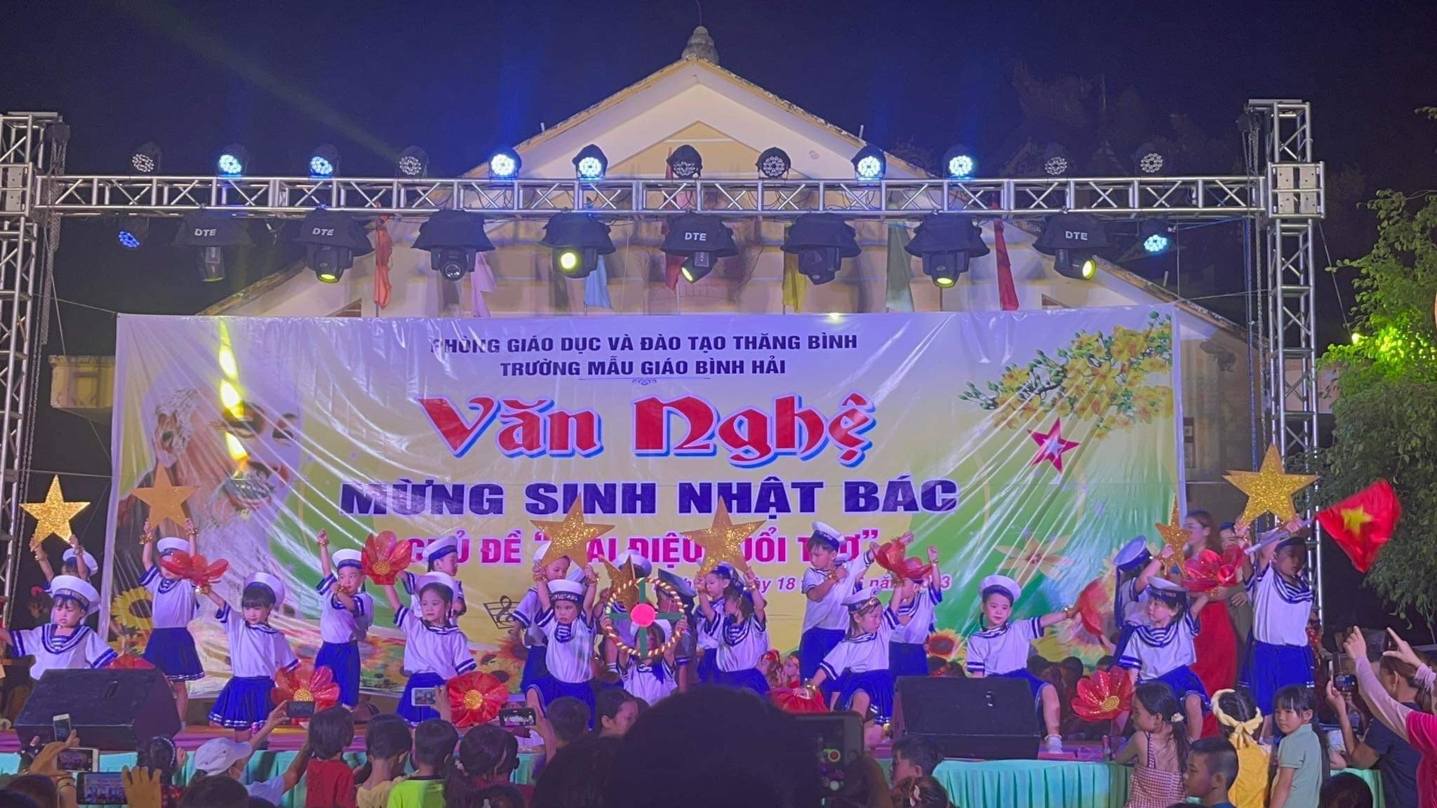 Nhằm kỷ niệm 133 năm sinh nhật Bác, tối ngày 18/5 /2023 trường Mẫu Giáo Bình Hải tổ chức văn nghệ, với “Giai điệu tuổi thơ”các tiết mục nhằm ca ngợi Đảng, Bác Hồ, quê hương đất nước, được cô và trò thể hiện rất sinh động, và được đông đảo phụ huynh và nhân dân đến cổ vũ.