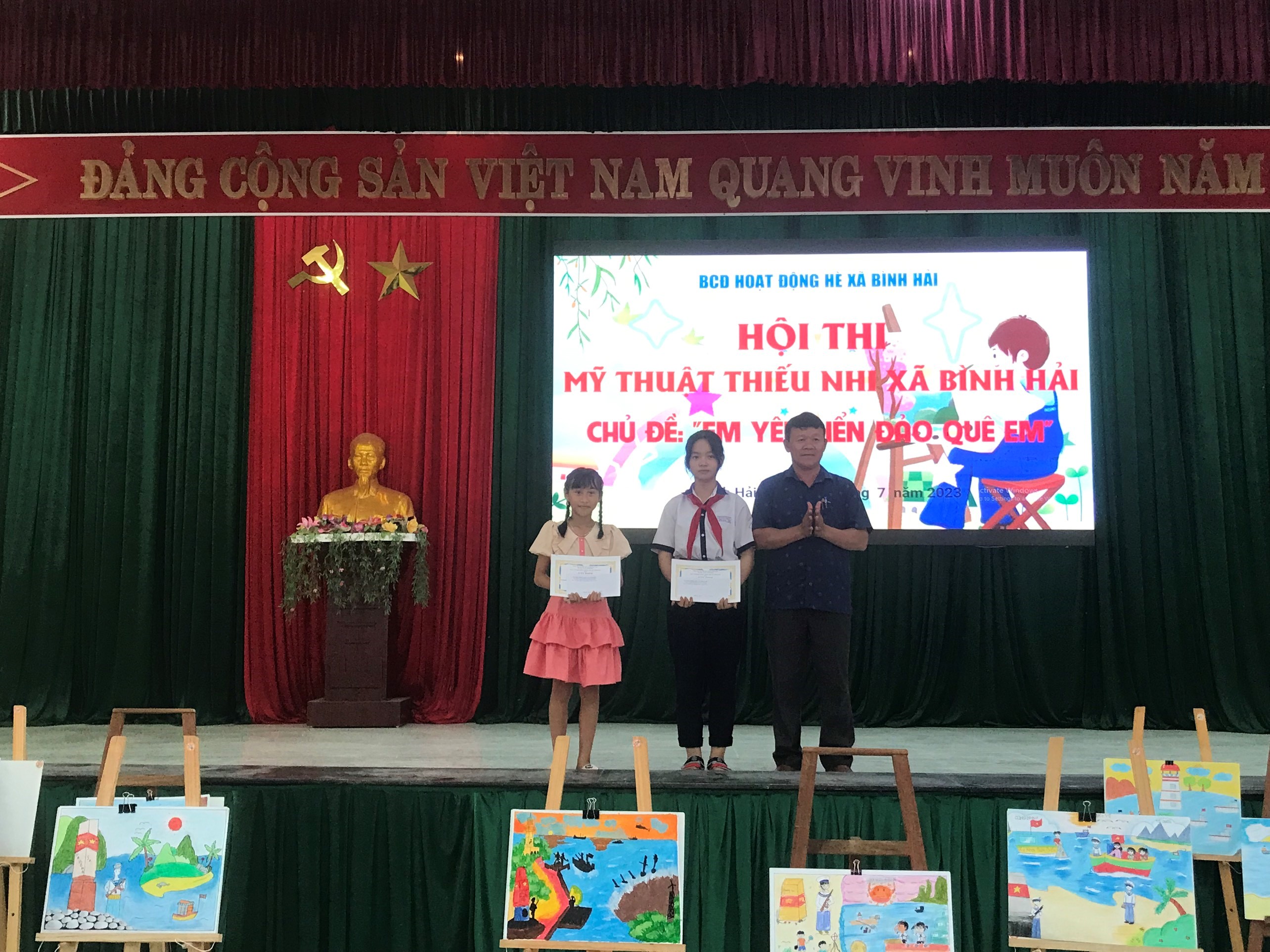 Sáng ngày 11/7/2023, BCĐ hoạt động hè xã Bình Hải tổ chức Hội thi mỹ thuật thiếu nhi xã Bình Hải lần thứ nhất – năm 2023 với chủ đề: “Em yêu biển đảo quê em”. Về dự Hội thi có Đ/c Hồ Thanh Tư – PBT, Trưởng Khối Dân vận Đảng ủy; Đ/c Nguyễn Kim Tư – PCT UBND, Trưởng Ban chỉ đạo HĐH xã Bình Hải.