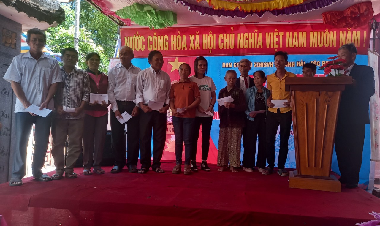 Cũng nhân dịp này, HĐGT đã trao 17 xuất quà cho các hộ già cả khó khăn, trẻ em mồ côi và trao 28 xuất quà cho các cháu học khá, giỏi các bậc học trong gia tộc trị giá trên 13.500.000 đồng.