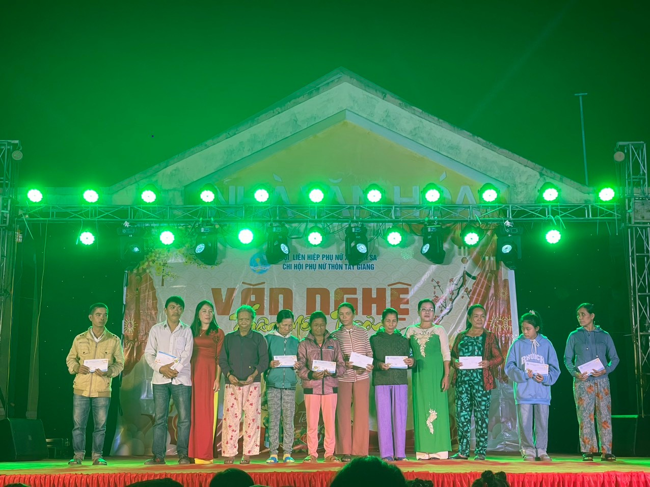 Tối ngày 14 tháng 02 năm 2024 (nhằm ngày 05 tháng giêng năm Giáp Thìn) Chi hội Phụ nữ thôn Tây Giang tổ chức đêm hội diễn văn nghệ với chủ đề “Xuân yêu thương”. Trong đêm hội diễn văn nghệ đã trao 13 xuất quà mỗi xuất trị giáo 300.000 đồng cho chị em phụ nữ trong thôn có hoàn cảnh khó khăn.