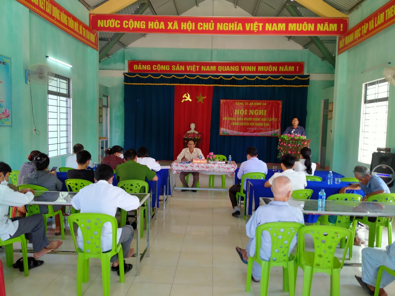 Đồng chí PBT trực Đảng-chủ tịch HĐND và đồng chí PBT-chủ tịch UBND xã đối thoại Nhân dân thôn Tây Giang ngày 11/5/2022