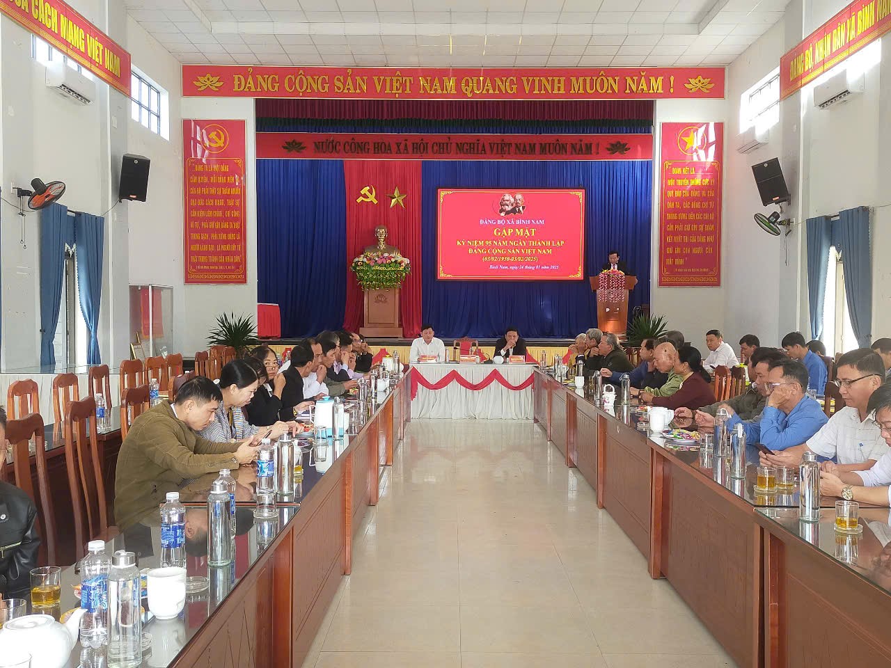Tại buổi gặp mặt, Đ/c Nguyễn Thanh Hoàng – Bí thư Đảng ủy, Chủ tịch HĐND xã đã ôn lại truyền thống 95 năm ngày thành lập Đảng Cộng sản Việt Nam. Dưới sự lãnh đạo của Đảng, dân tộc ta đã đứng lên đấu tranh giải phóng dân tộc, thống nhất đất nước, đưa đất nước từng bước tiến lên chủ nghĩa xã hội. Đối với xã Bình Nam, trong những năm qua, Đảng bộ và nhân dân đã đoàn kết, khắc phục khó khăn, thực hiện các mục tiêu nhiệm vụ đã đề ra, xây dựng xã ngày càng phát triển. Đặc biệt năm 2024, Đảng bộ được công nhận “Hoàn thành xuất sắc nhiệm vụ”.