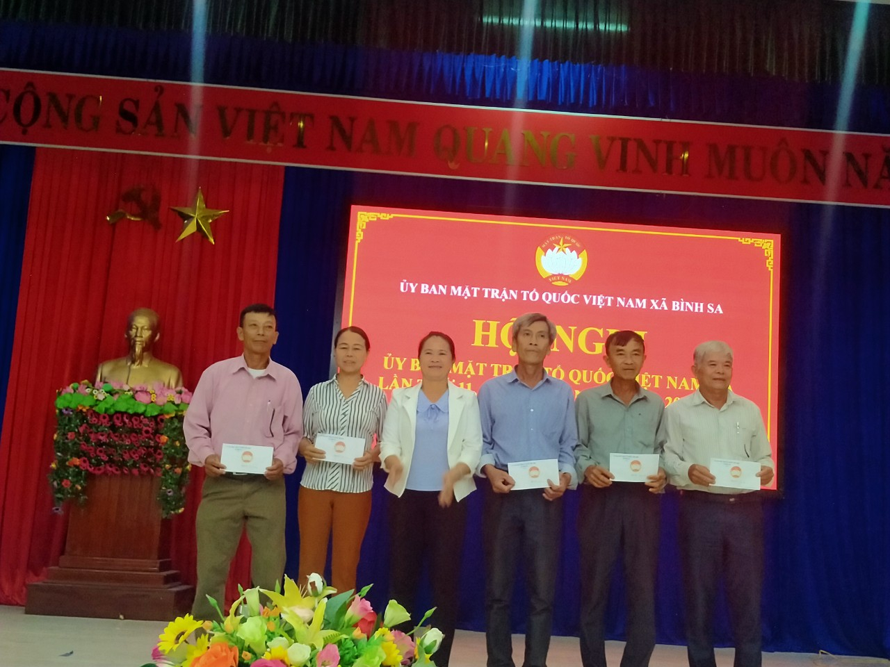 Tại hội nghị này UBMTTQVN xã đã khen thưởng cho 5 ban công tác mặt trận thôn đã thu vượt chỉ tiêu vạn động quỹ người nghèo.
