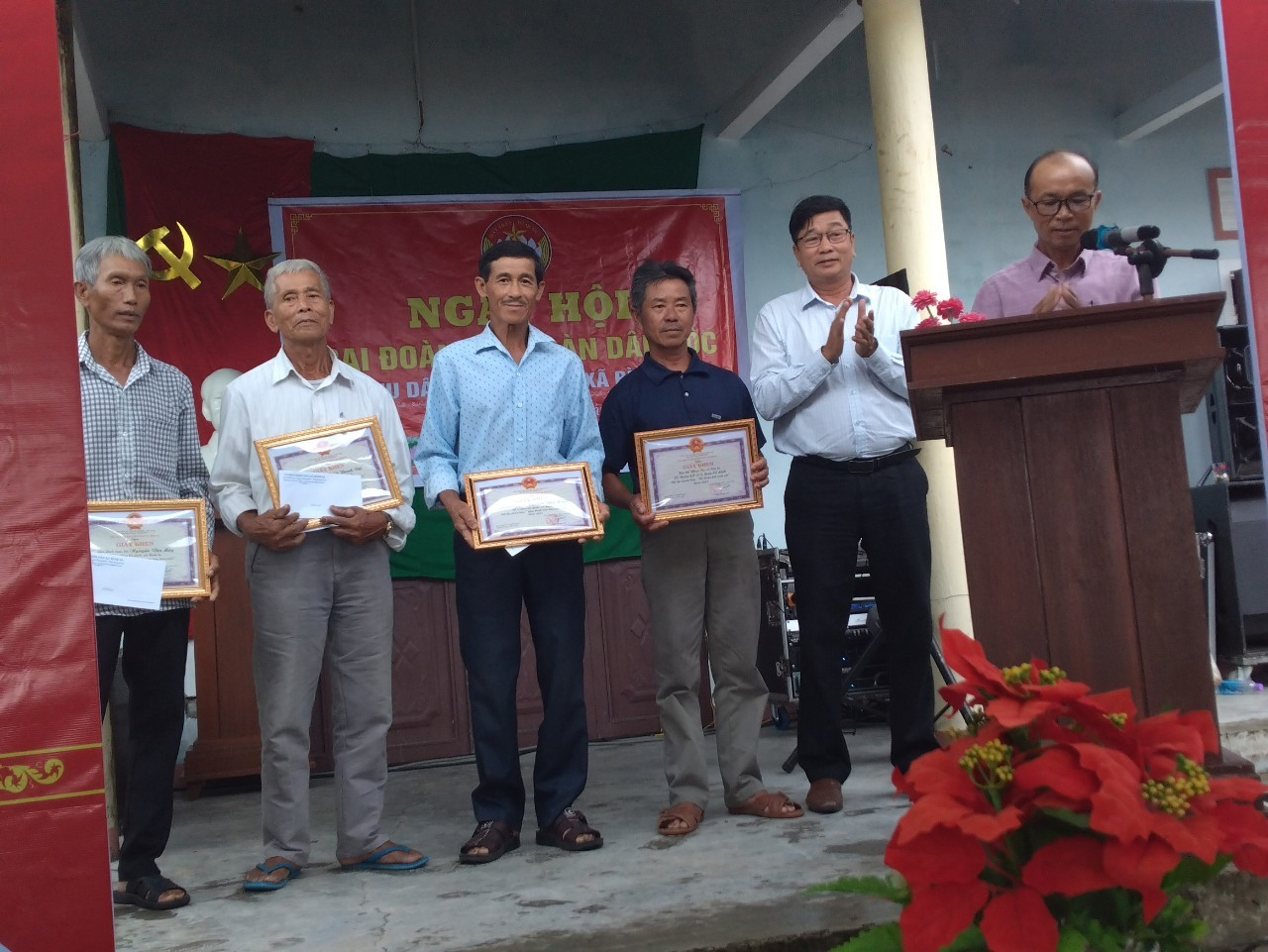 Ông Châu Quang Anh, Chủ tịch UBND xã trao giấy khen cho tập thể Tổ đoàn kết xuất sắc và gia đình văn hóa tiêu biểu