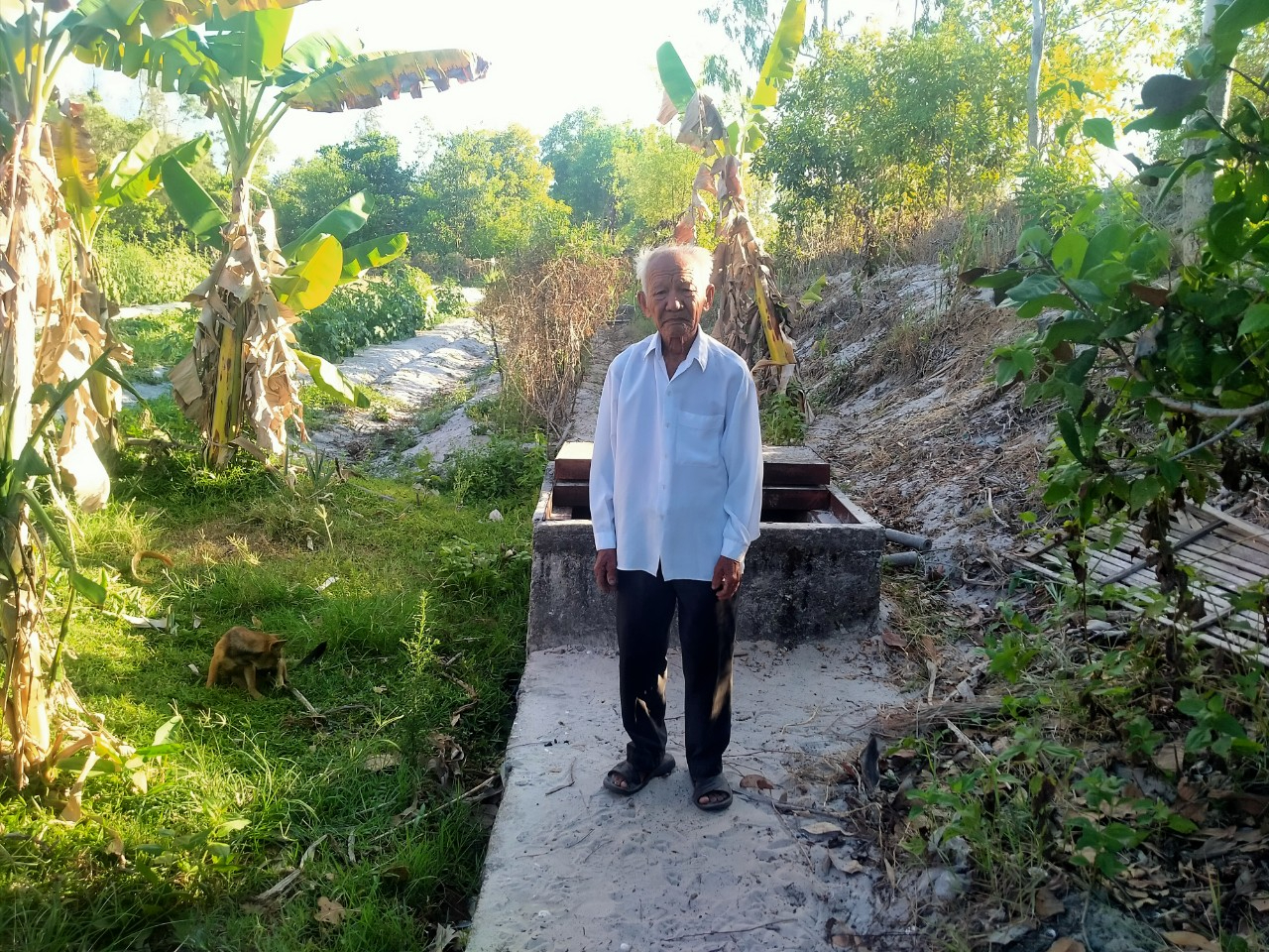 Ảnh: Ông Liên Cường hiến đất đai, cây cối để làm kênh