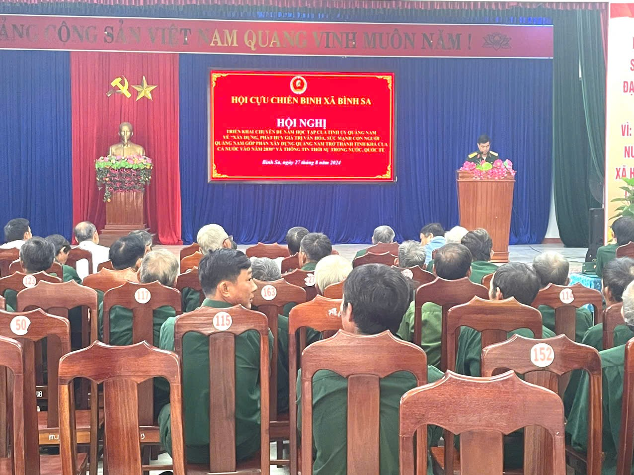Hội nghị đã nghe đồng chí Bùi Văn Trí – PCT Hội CCB tỉnh Quảng Nam, báo cáo chuyên đề và thông tin thời sự tình hình trong nước, quốc tế. Thông qua hội nghị này triển khai cho hội viên nắm rõ chuyên đề năm 2024 trong việc học tập và làm theo tư tưởng đạo đực phong cách Hồ Chí Minh, đồng thời thông tin kết quả tình hình kinh tế - xã hội, quốc phòng an ninh của tỉnh nhà trong 8 tháng đầu năm 2024. Việc triển khai học tập đến toàn thể hội viên làm cơ sở quan trọng, tuyên truyền động viên để hội viên cựu chiến binh kiên định mục tiêu độc lập dân tộc, chủ nghĩa xã hội, đấu tranh làm thất bại mọi âm mưu của các thế lực thù địch, góp phần xây dựng quê hương giàu đẹp./.