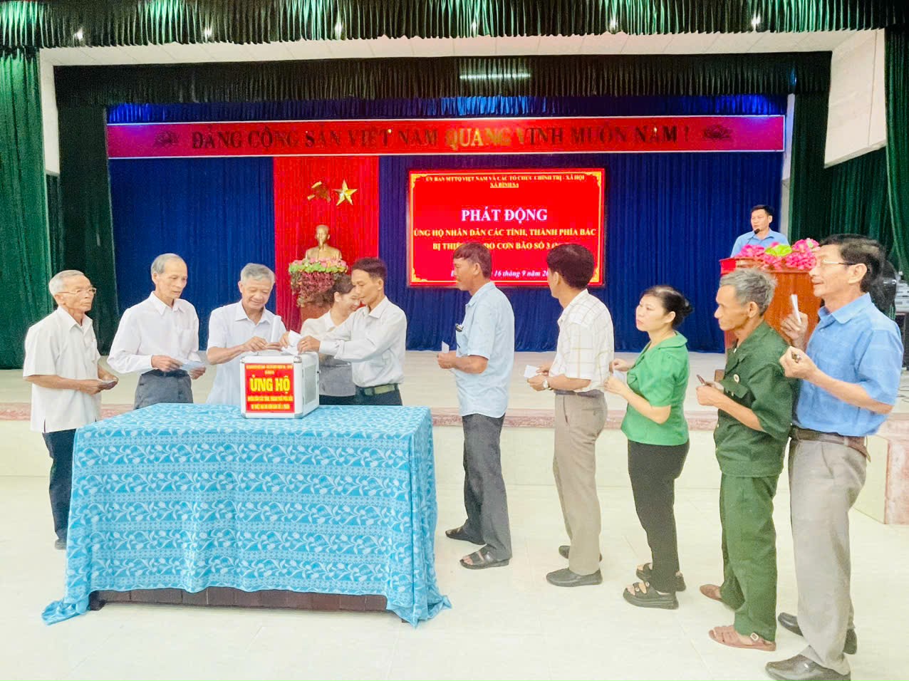 Tại buổi phát động, cán bộ, công chức, viên chức, người hoạt động không chuyên trách cơ quan xã, trường học, trạm y tế, hợp tác xã và các nhà hảo tâm, Nhân dân trên địa bàn xã nắm được thông tin thiệt hại và chia sẽ những đau thương mất mát của Nhân dân các tỉnh, thành phía Bắc, tích cực hưởng ứng đóng góp, tính đến 14 giờ ngày 16/9/2024 số tiền ủng hộ trên 24 triệu đồng và hàng hóa (áo quần trẻ em). Đây là nghĩa cử cao đẹp, nhằm góp phần với Nhân dân các tỉnh, thành phía Bắc bị thiệt hại vượt qua khó khăn, ổn định cuộc sống.