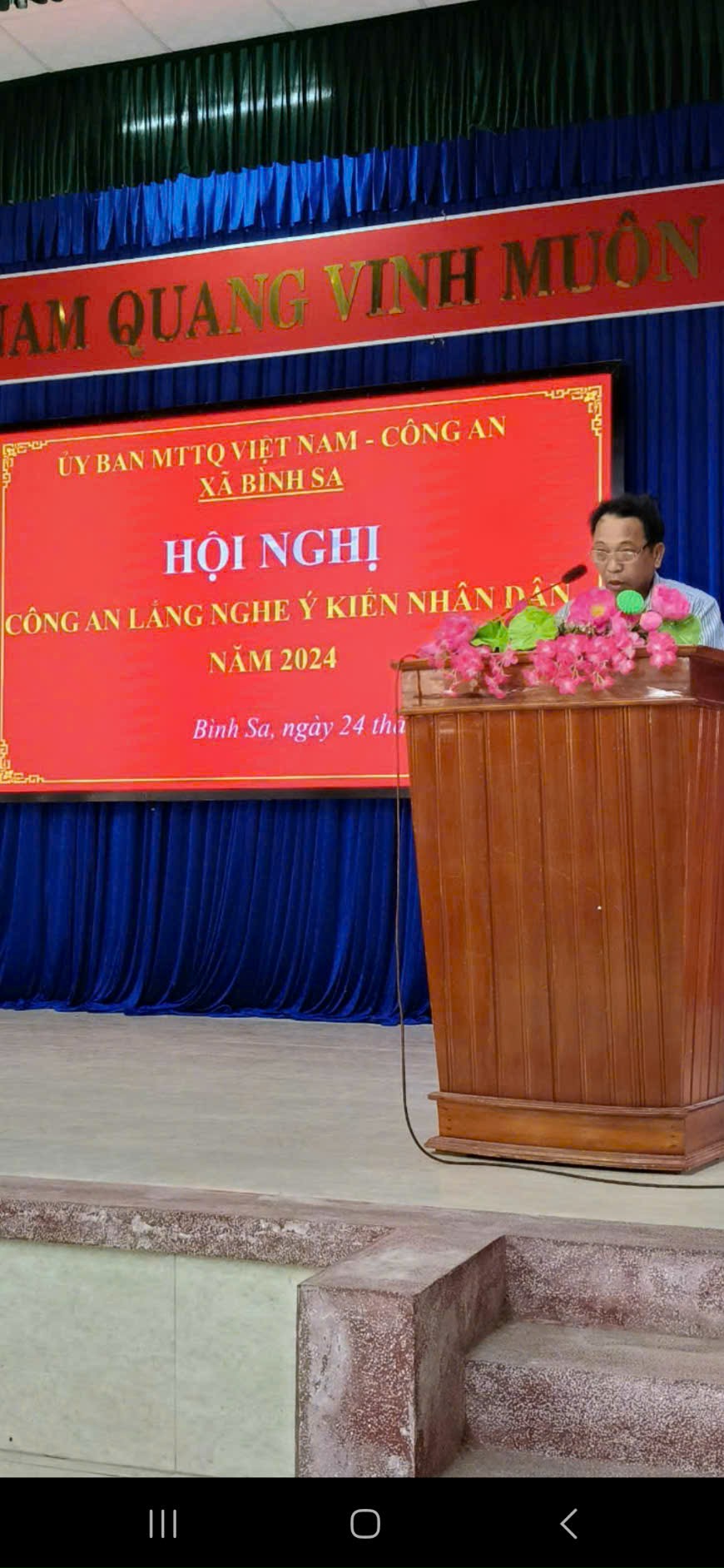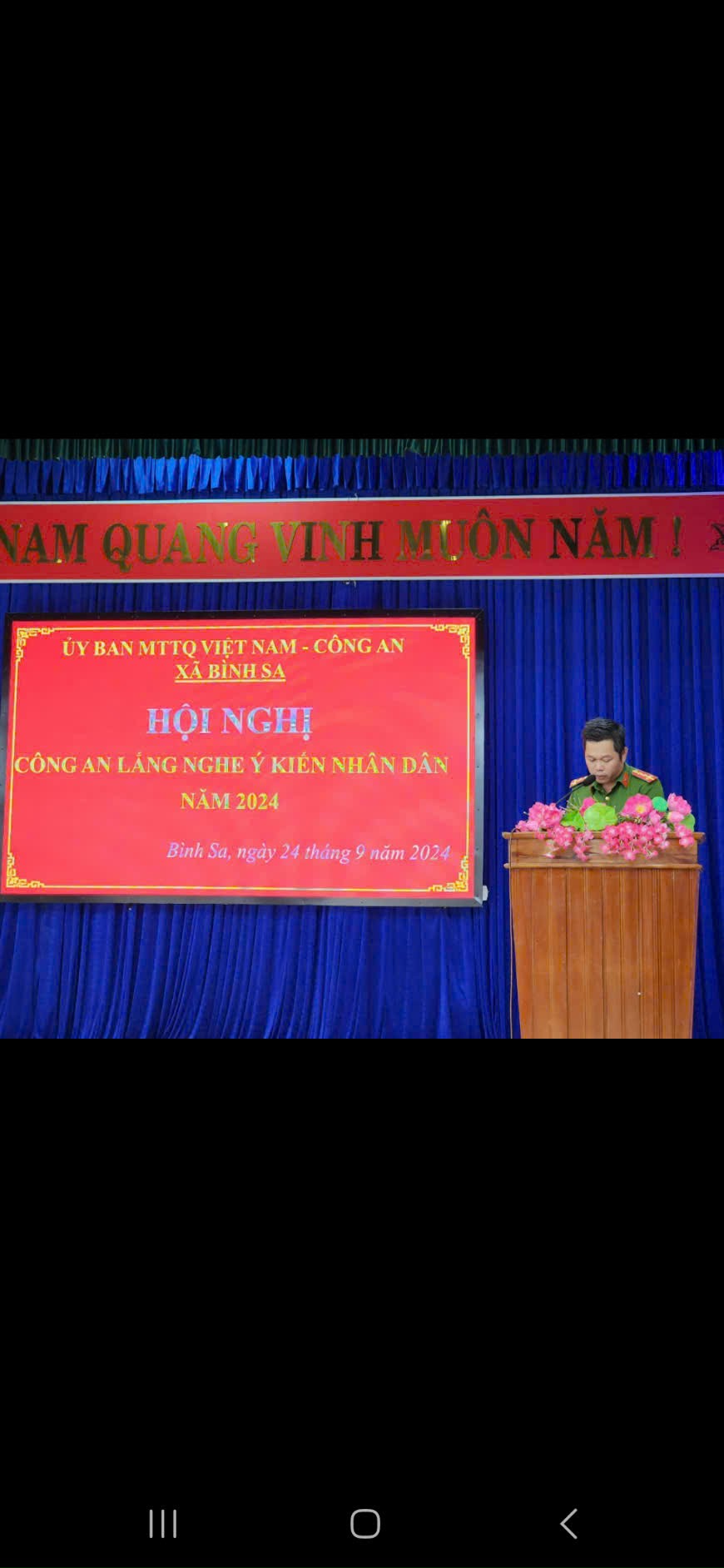 Tại Hội nghị có 12 ý kiến góp ý, đa số người dân ghi nhận tình hình an ninh chính trị, trật tự an toàn xã hội trên đại bàn xã ổn định hơn từ khi có công an chính quy về xã. Tuy nhiên, người dân cũng phản ánh tình hình trộm cắp, đánh bạc, ma túy, lấy cát trái phép vẫn còn xảy ra và tình trạng gây mất an toàn giao thông ở lứa tuổi học sinh... Tiếp thu các ý kiến tại Hội nghị, Đại úy Nguyễn Trung Hiếu - Trưởng Công an xã Bình Sa đã trao đổi, giải thích một số ý kiến, kiến nghị của Nhân dân. Qua đây, đề ra giải pháp nhằm giữ vững ổn định an ninh chính trị, trật tự an toàn xã hội trên địa bàn xã.