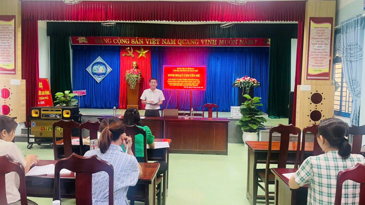 Ảnh: Một buổi sinh hoạt chuyên đề của Chi bộ trường TH Trần Phú, Đảng bộ xã Bình Sa