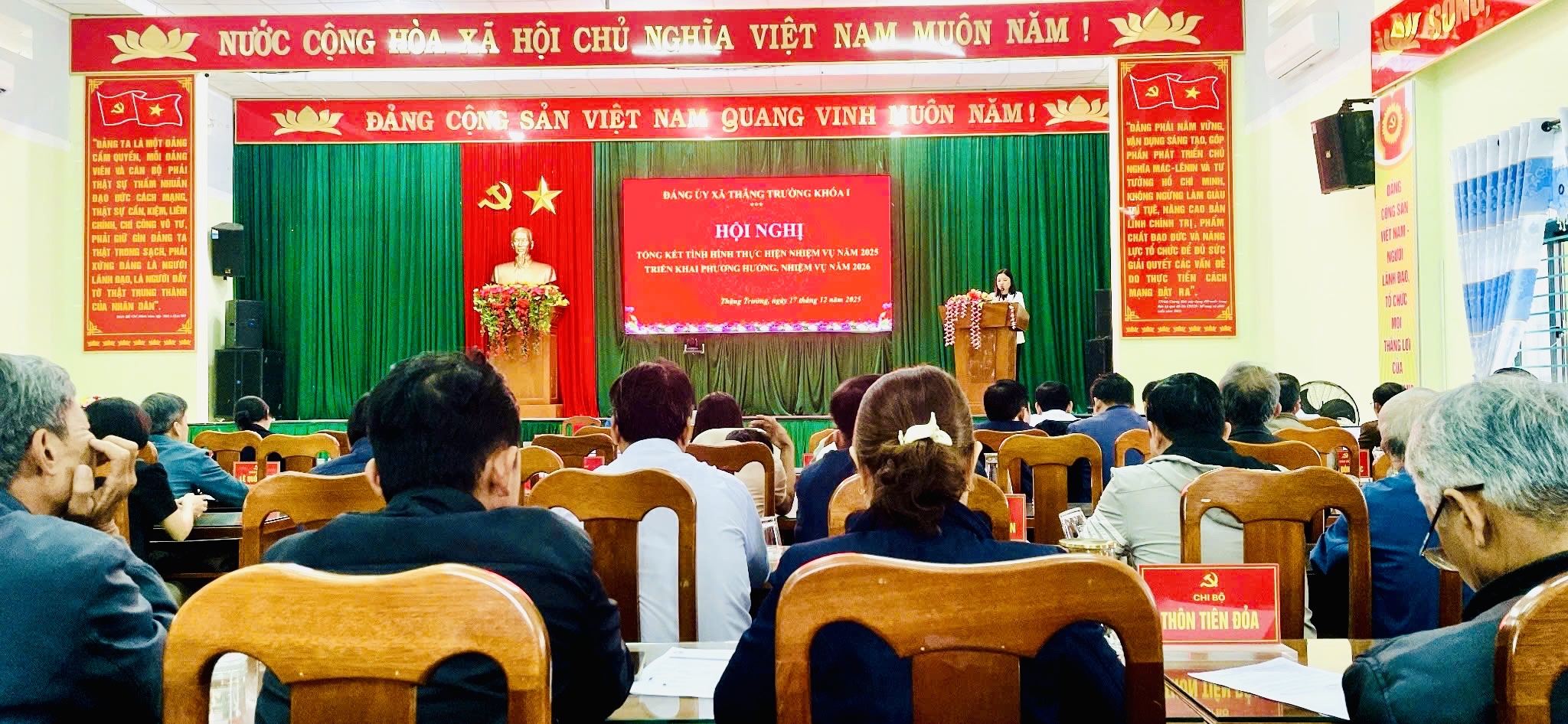 Có thể nói rằng, năm 2025 là năm cực kỳ khó khăn do ảnh hưởng của dịch tả lợn Châu Phi trên địa bàn xã, ảnh hưởng của thiên tai, lũ lụt, đặc biệt thực hiện mô hình chính quyền địa phương 2 cấp từ sau ngày 01/7 với khối lượng công việc nhiều, cơ sở hạ tầng chưa đáp ứng yêu cầu nhiệm vụ trong tình hình mới, những tồn tại, vướn mắc của các xã củ còn lại chưa được tháo gỡ, nhiều dự án trọng điểm đang được triển khai trên địa bàn xã…Nhưng với sự quyết tâm cao của cả hệ thống chính trị, Thăng Trường đã đạt được những kết quả quan trọng bước đầu cơ bản hoàn thành các chỉ tiêu nhiệm vụ mà Nghị quyết năm 2025 đã đề ra, đây là tiền đề quan trọng để Thăng Trường tiếp tục thực hiện tốt hơn trọng thời gian đến.
