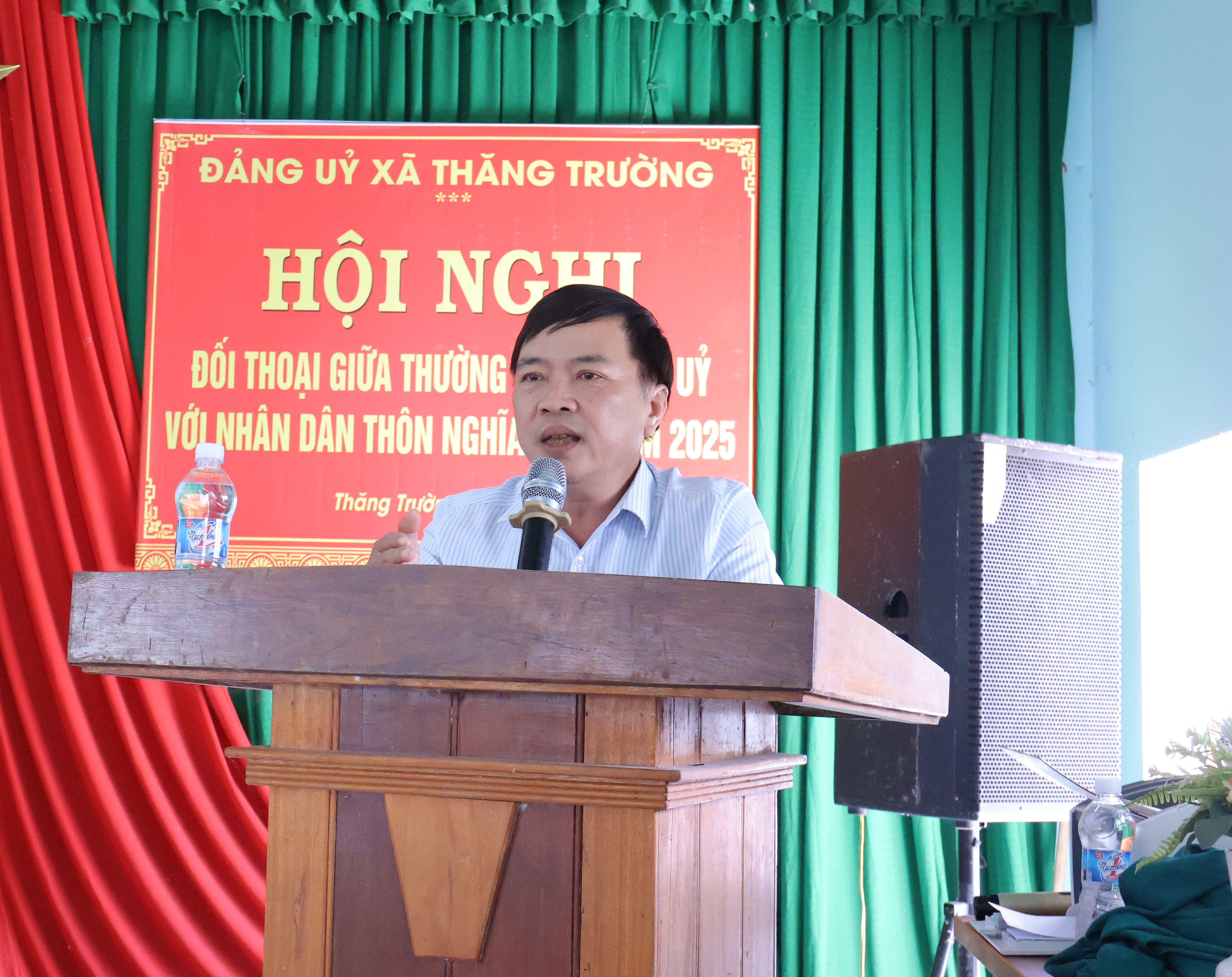 Cùng đại diện các cơ quan liên quan tham dự có: Chủ tịch Ủy ban MTTQVN xã, Phó chủ tịch HĐND xã, trưởng các ban ngành đoàn thể của xã và đại biểu HĐND xã. Đại diện Lãnh đạo Trung Tâm phát triển quỹ đất khu vực 7, Đại diện lãnh đạo Chi nhánh văn phòng đăng ký đất đai Thăng Bình, hơn 150 cử tri trên địa bàn thôn Nghĩa Hòa tham gia đối thoại trực tiếp.
