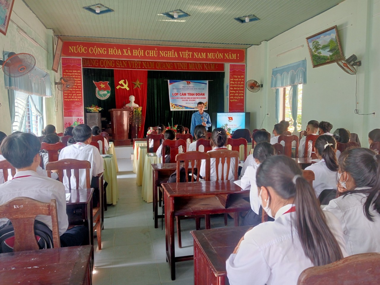 ( Đ/c Lê Thống Nhất – ĐUV, Bí Thư Đoàn xã báo tai lớp cảm tình đoàn)