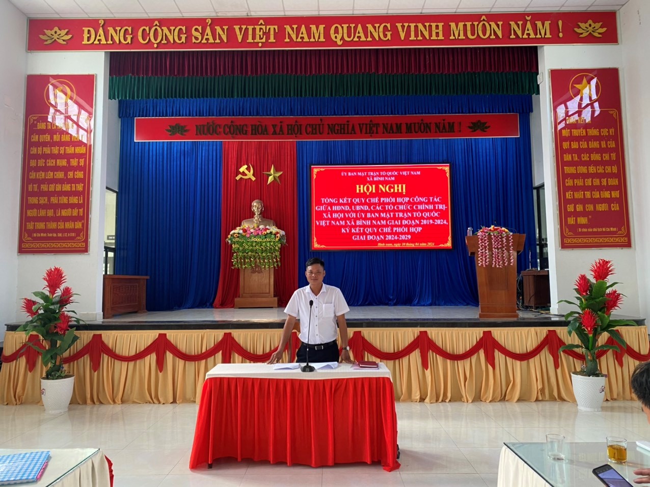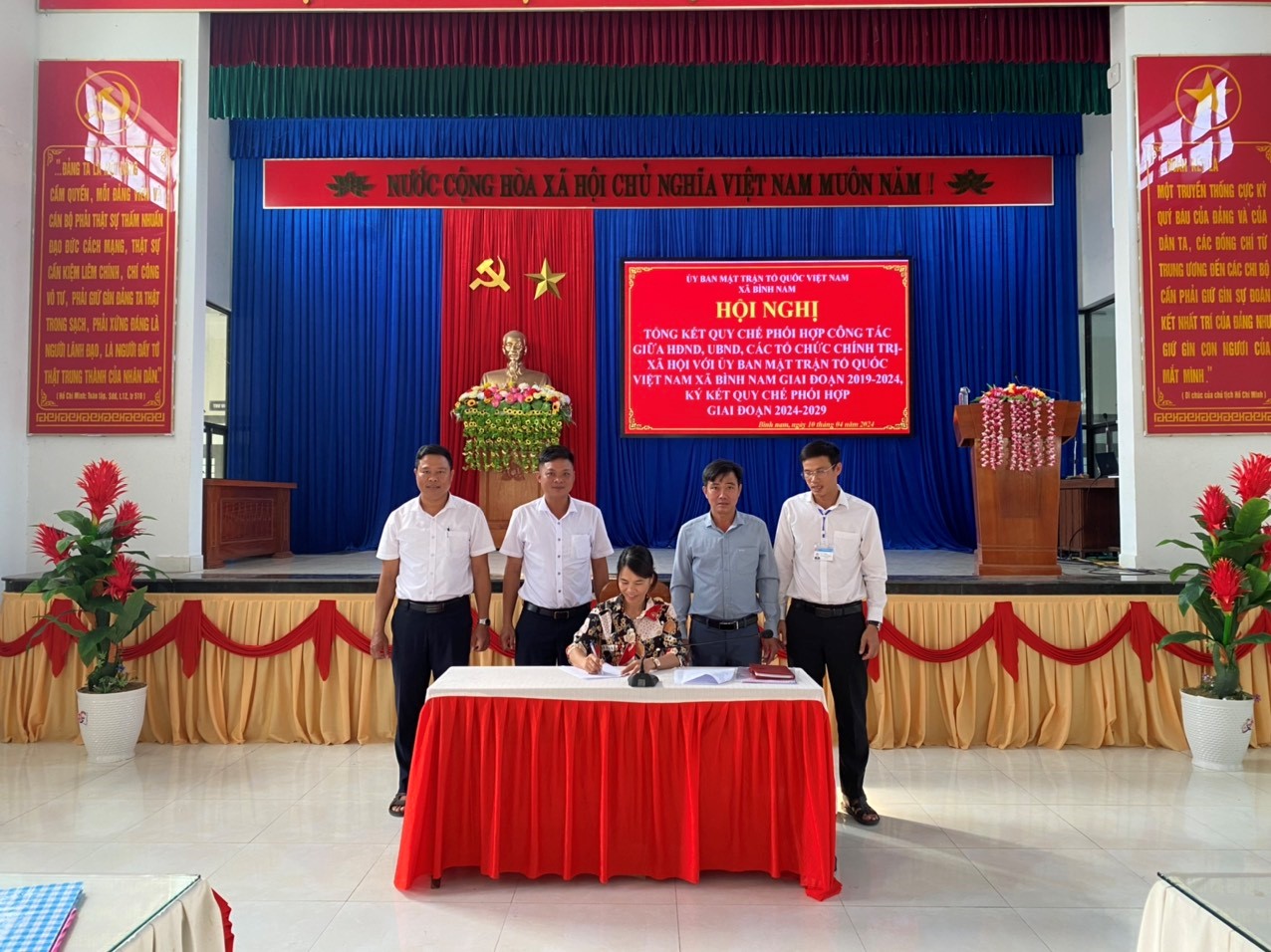 Chiều ngày 10/04/2024 UBMTTQ VN xã tổ chức hội nghị ký kết quy chế phối hợp giữa UBMTTQ VN xã với UBND, Các Hội đoàn thể của xã Bình Nam.