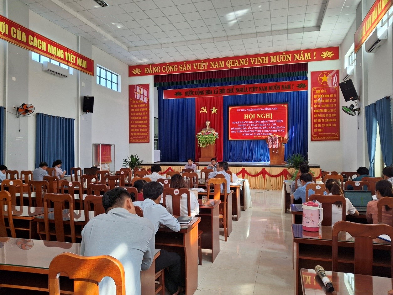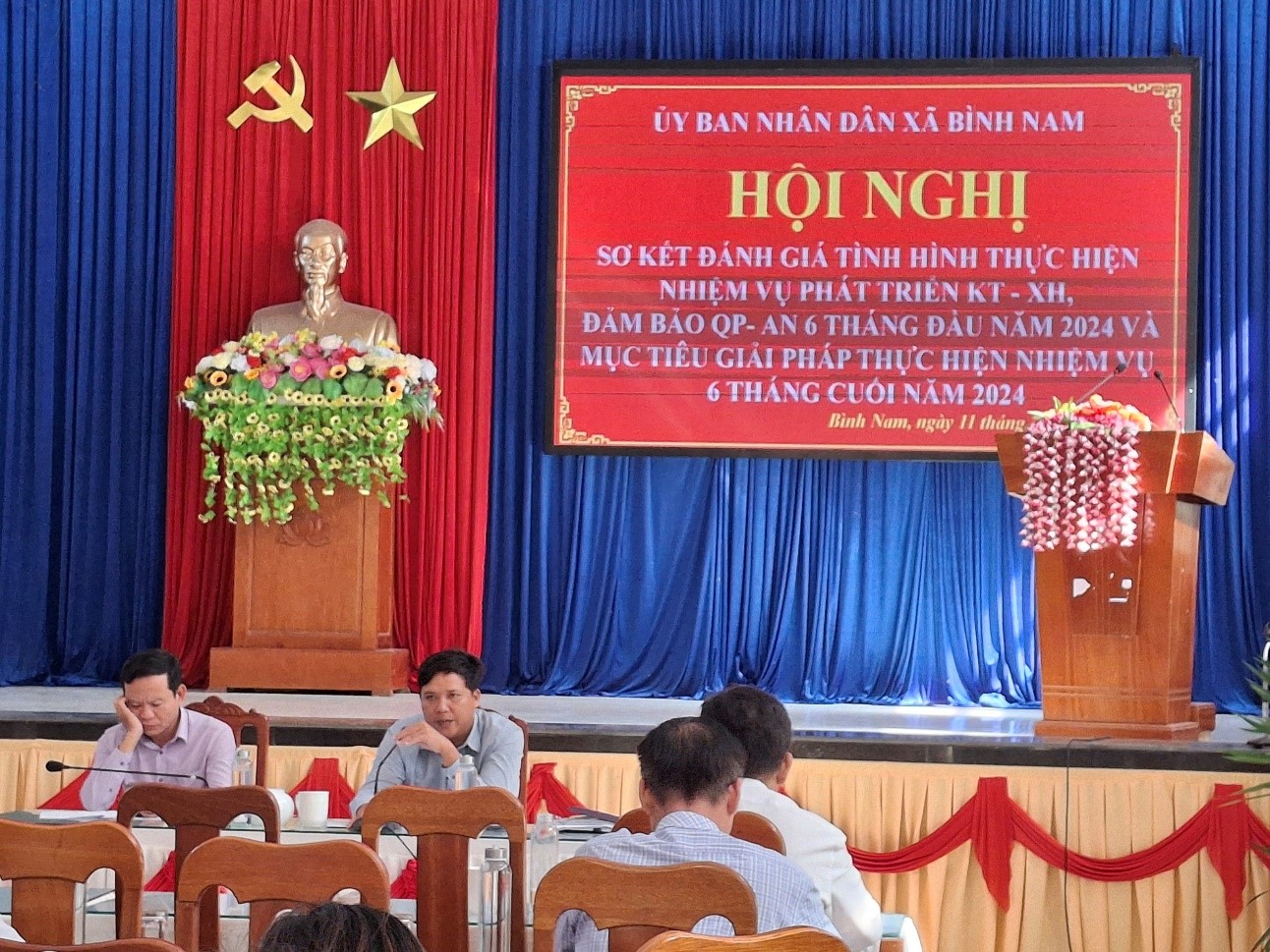Vào ngày ngày 11/07/2024 UBND xã Bình Nam tổ chức Hội nghị sơ kết, đánh giá tình hình phát triển KT – XH, đảm bảo QP – AN 6 tháng đầu năm 2024 và mục tiêu, giải pháp thực hiện nhiệm vụ 6 tháng cuối năm 2024.