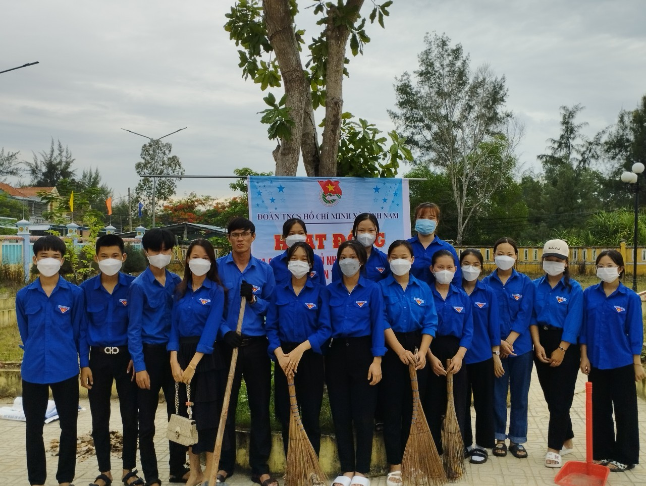 ( hình ảnh các bạn đoàn viên thanh niên tham gia hoạt động dọn vệ sinh)