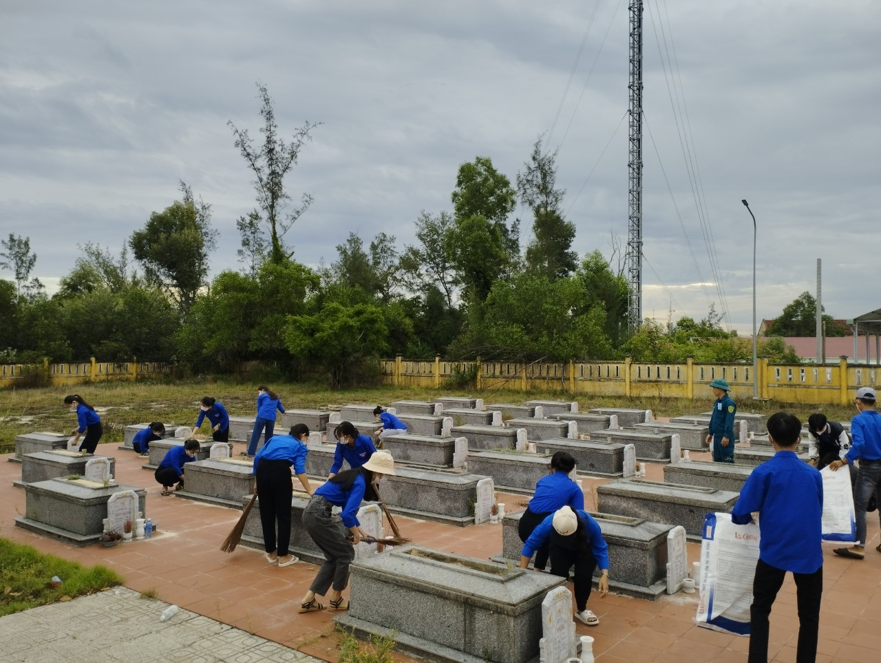 (các bạn đoàn viên đang vệ sinh các khu mộ anh hùng liệt sĩ)