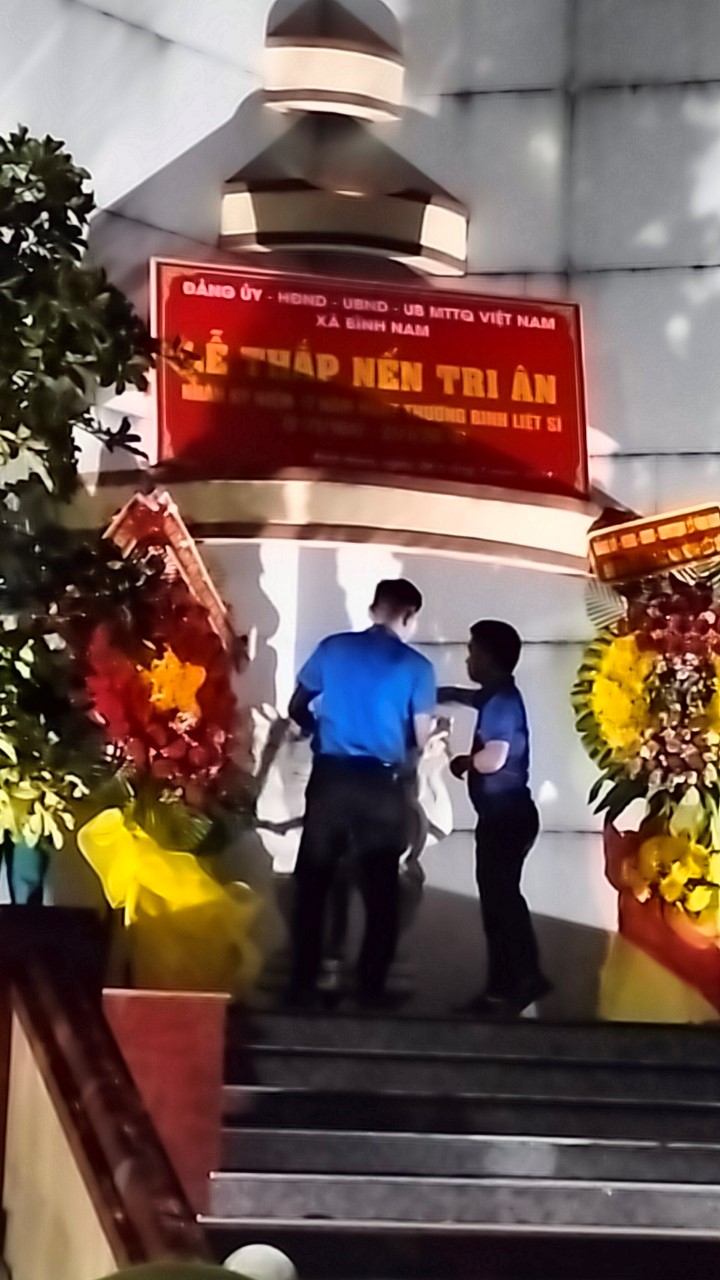 Tối ngày 26/7/2024 Đảng ủy, HĐND, UBND, UBMTTQ VN xã các ban ngành đoàn thể của xã tổ chức buổi lễ thắp nén tri ân các anh hùng liệt sĩ và tổ chức cúng bữa cơm ngày 27/7 tại Nghĩa trang liệt sĩ xã Bình Nam.