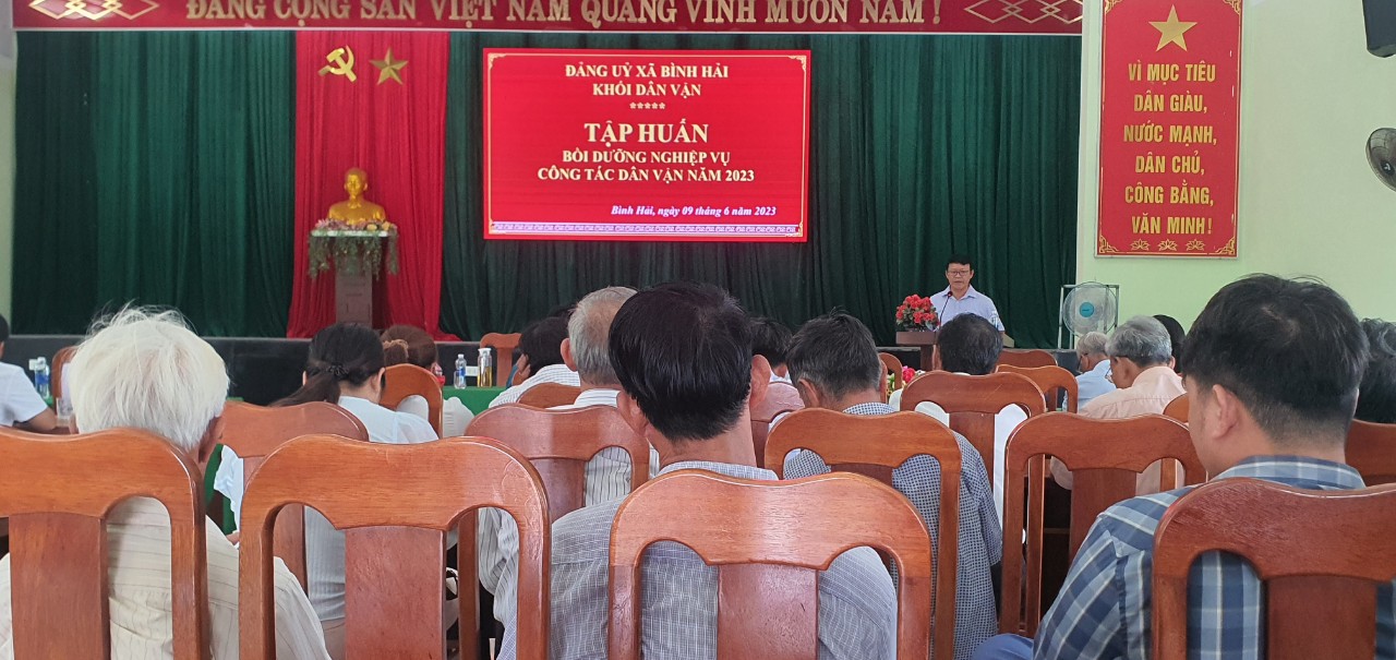 Sáng ngày 09/6/2023, Khối dân vận Đảng ủy xã Bình Hải tổ chức tập huấn bồi dưỡng nghiệp vụ công tác dân vận năm 2023.