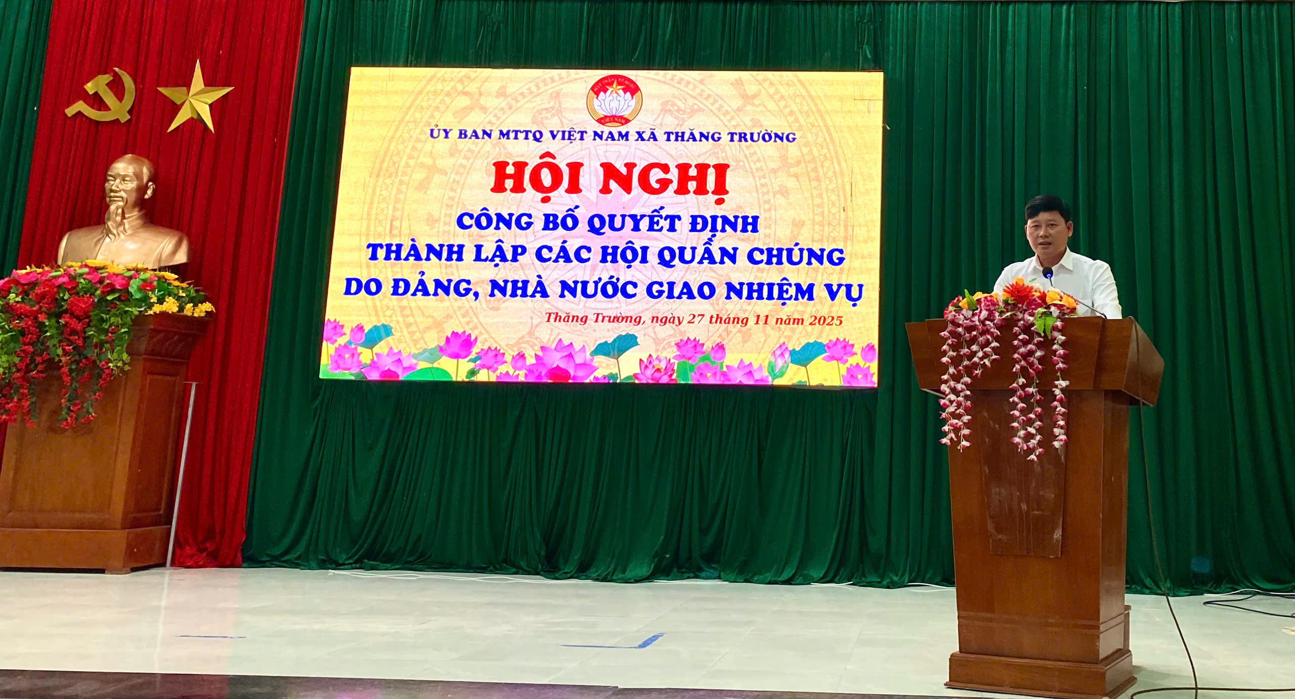 Sau phần công bố các quyết định thành lập, đồng chí Võ Tấn Thuận - Bí thư Đảng ủy đã phát biểu chỉ đạo, nhấn mạnh vai trò của các hội quần chúng trong việc làm cầu nối giữa Đảng, chính quyền với nhân dân. Đồng chí khẳng định các tổ chức hội là lực lượng quan trọng trong phát triển kinh tế - xã hội và giữ vững quốc phòng - an ninh tại địa phương.